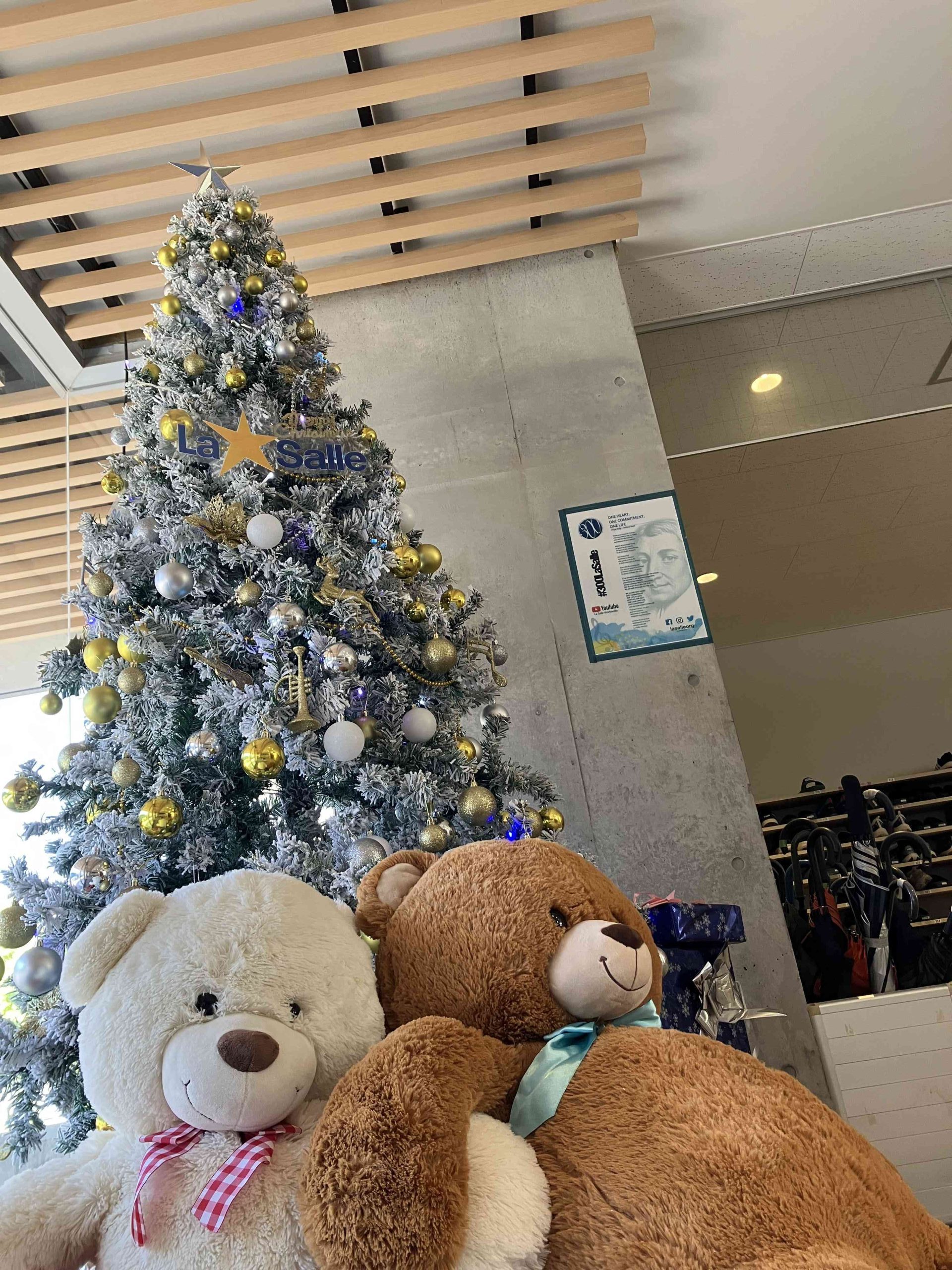 学校事務室前にクリスマスツリーが飾られました。約2メートルあります。 お越しの際はぜひご覧ください。