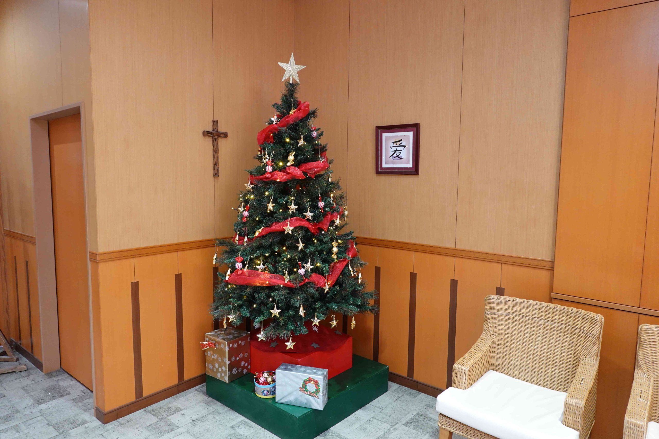 本校事務室前には、恒例のクリスマスツリーが飾られました。