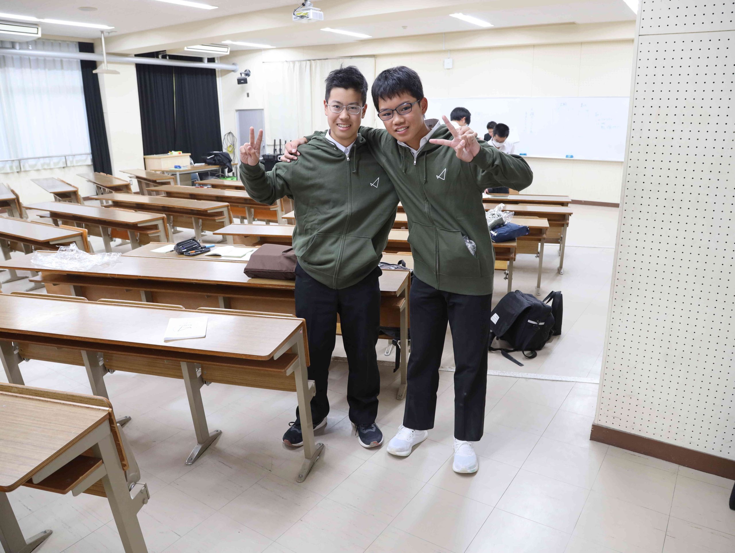 折しもこの日は高3の希望者対象特別補講の最終日でした。折角なので最後の教室掃除をしていた高3生や担任も一緒に記念撮影を行いました。