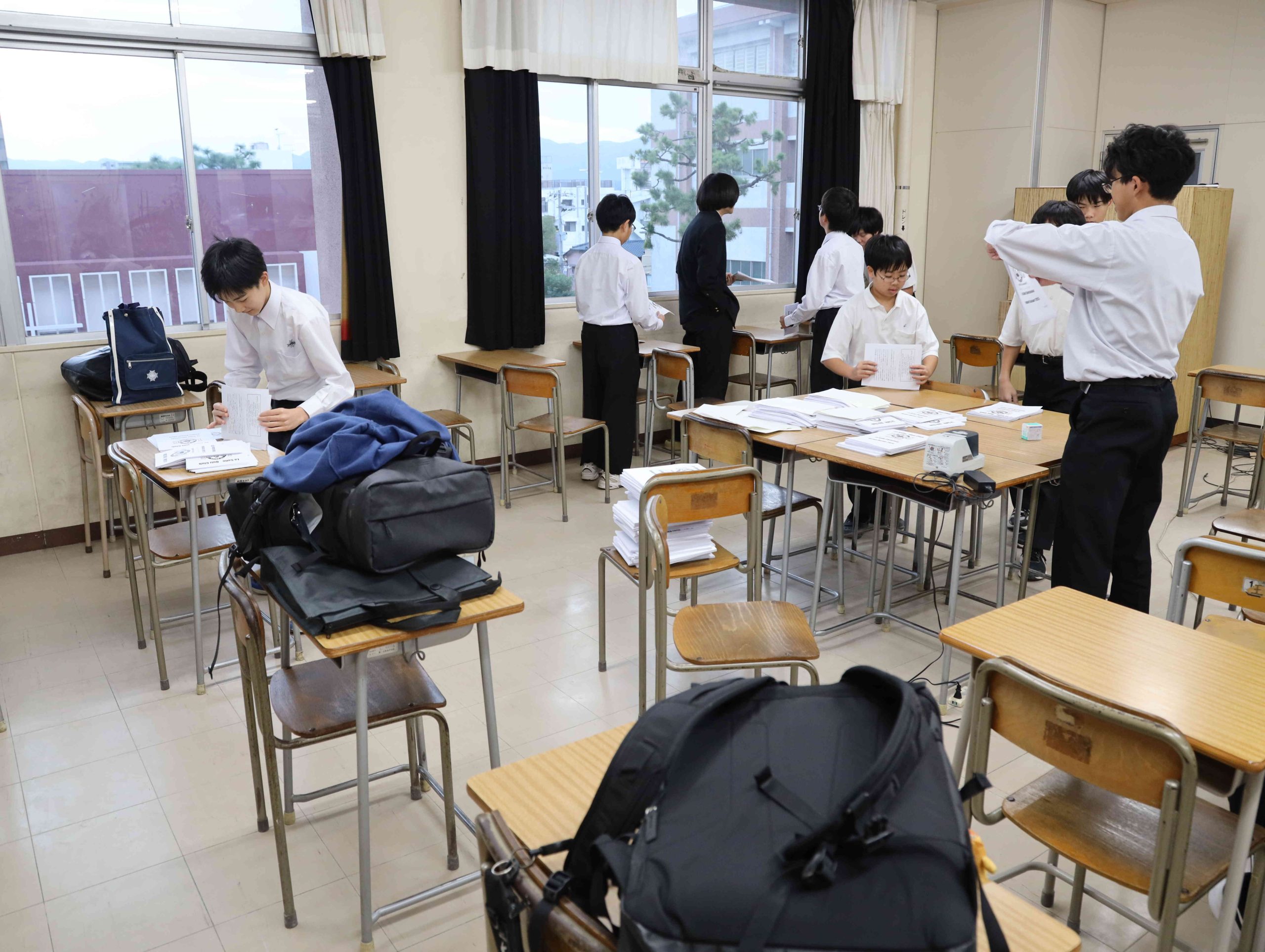 寮生は寮の食堂で昼食を摂るため、今までは昼休み前半の高2教室は静かなものでした。しかし最近、高校2年の寮生は全員指定下宿に移動しました。そのため下宿で作っていただいた弁当を教室で食べる生徒が増え、自宅生ともども、昼休みの教室はとても賑やかになっています。