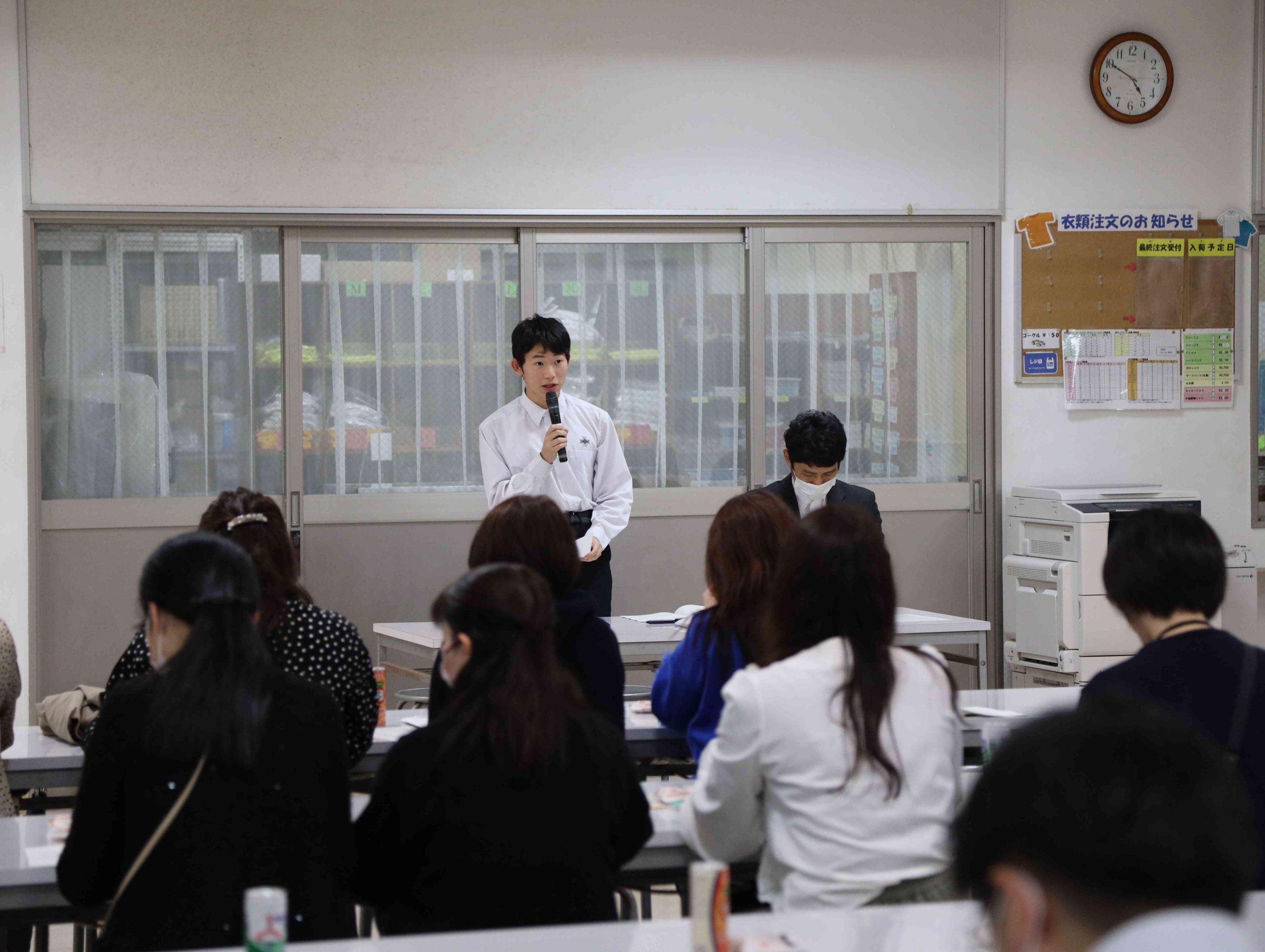 受験引率④ 理系受験者をホテルの食事会場に集めて、先輩が激励しているところです。毎年自主的に来てくれるOBは、後輩の受験生の大きな支えになっています。