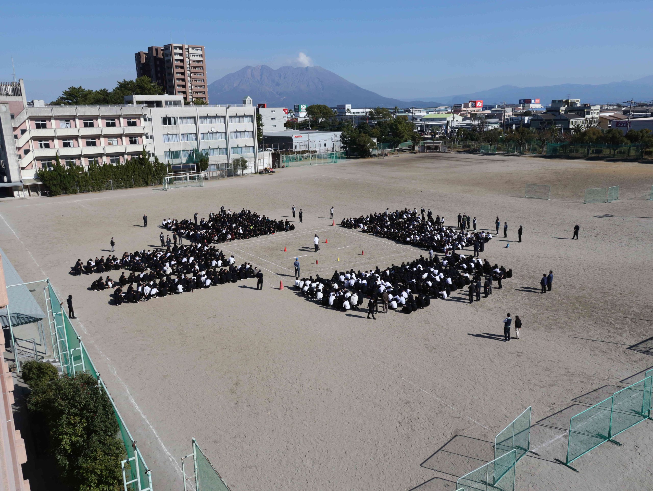 一昨日から昨日にかけて鹿児島にも寒波が押し寄せ、昨日は雪のために本校は休校になりました。今日は天候が回復しグラウンドも乾き始めましたが、とても寒く、桜島は五合目あたりまで雪をかぶっています。