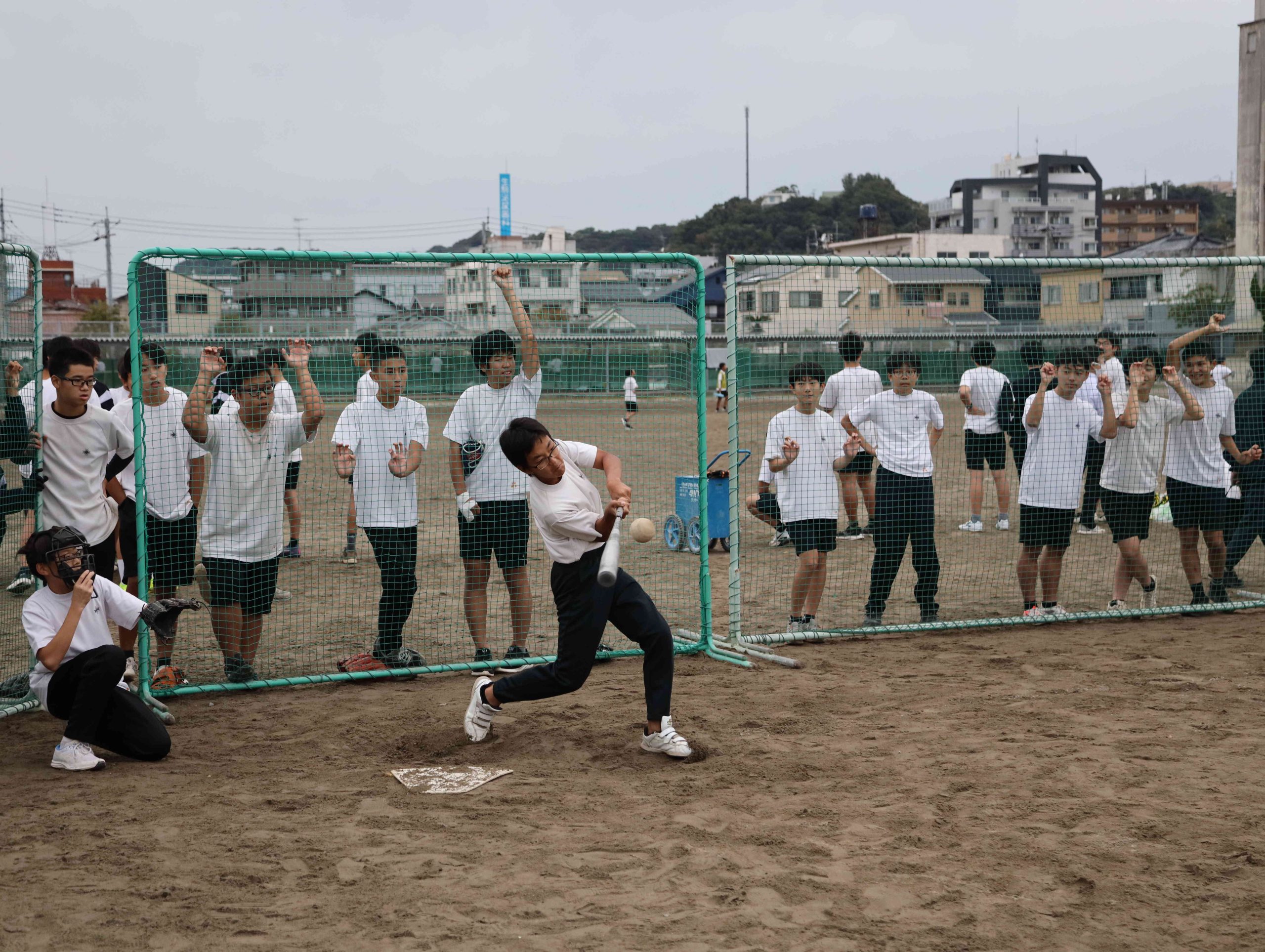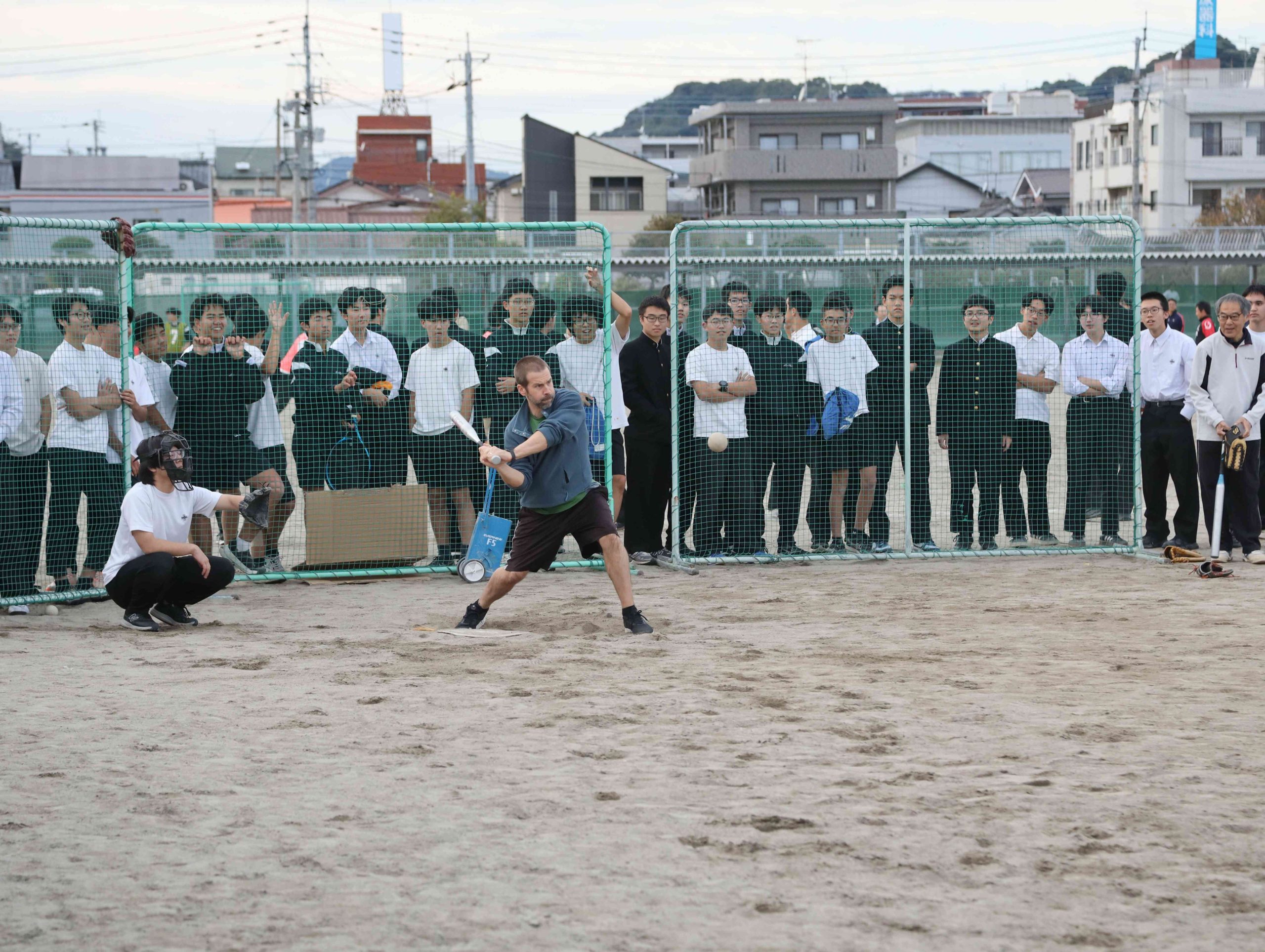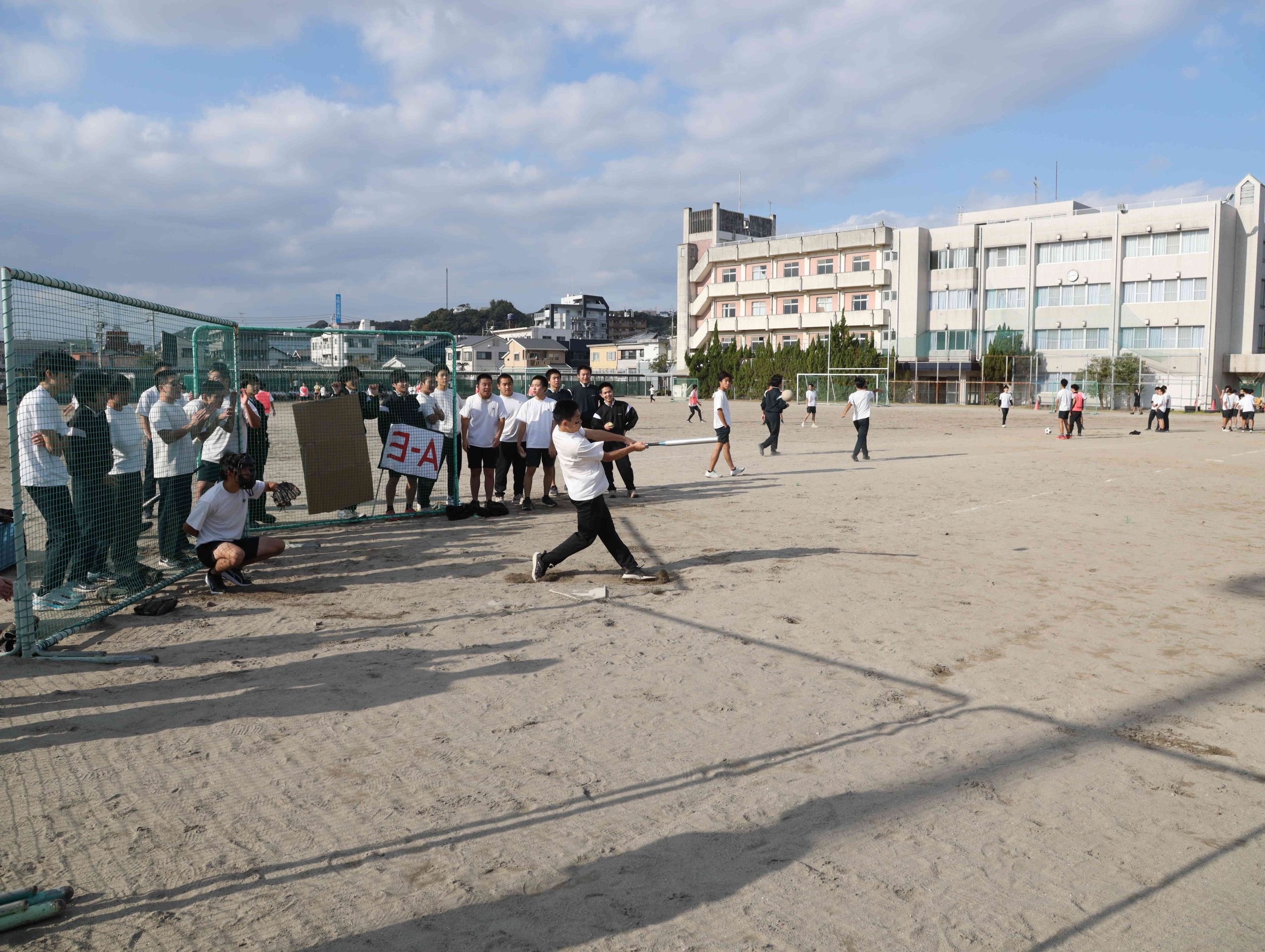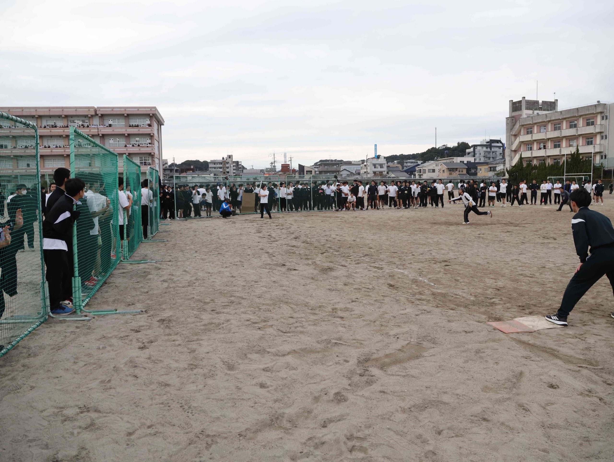 午後、高校クラスマッチが行われました。高3が卒業して、2学年での実施です。教員戦で優勝チームと教員チームが戦いました。さすが高校生、長打が次々に出ました。