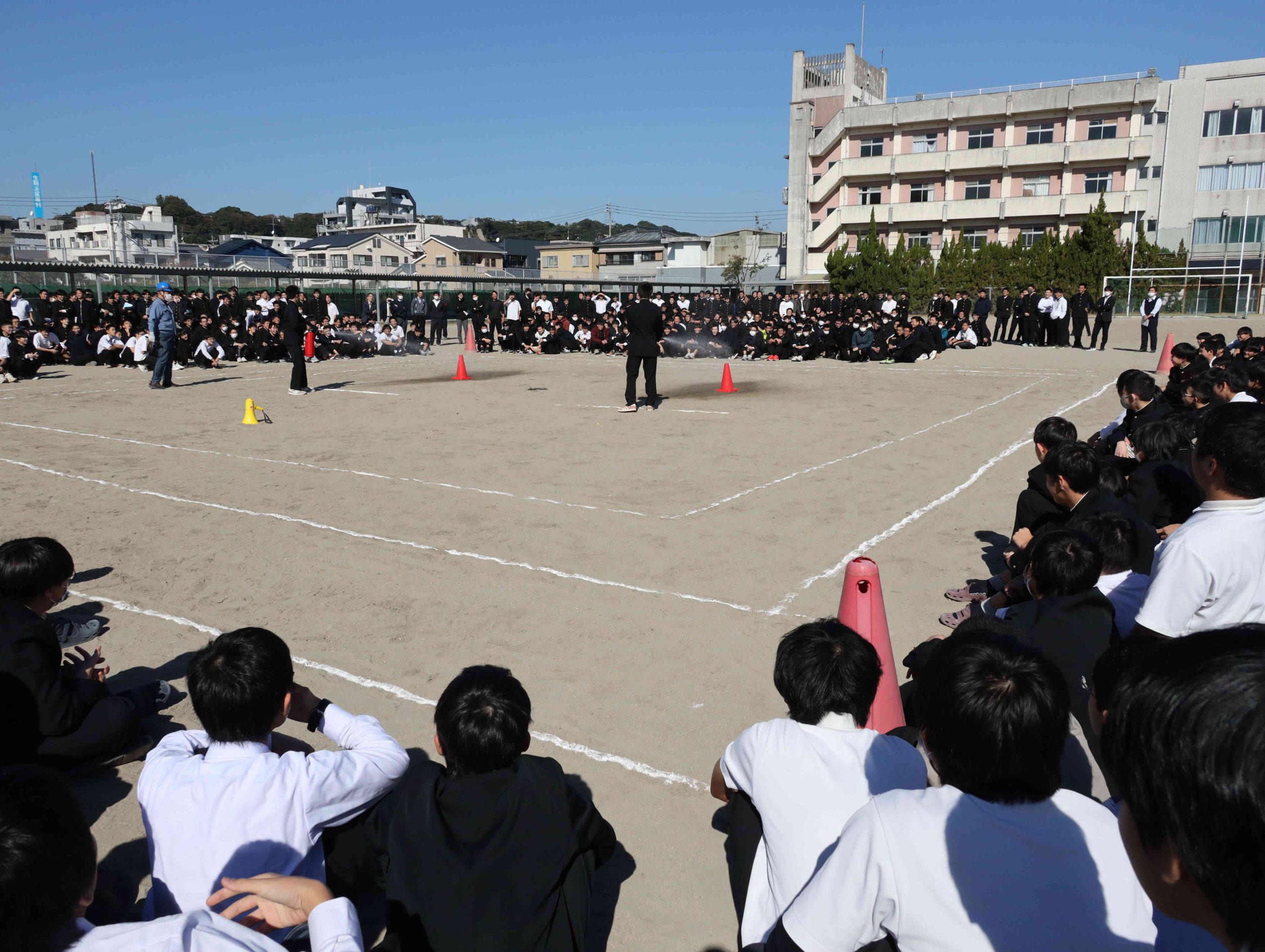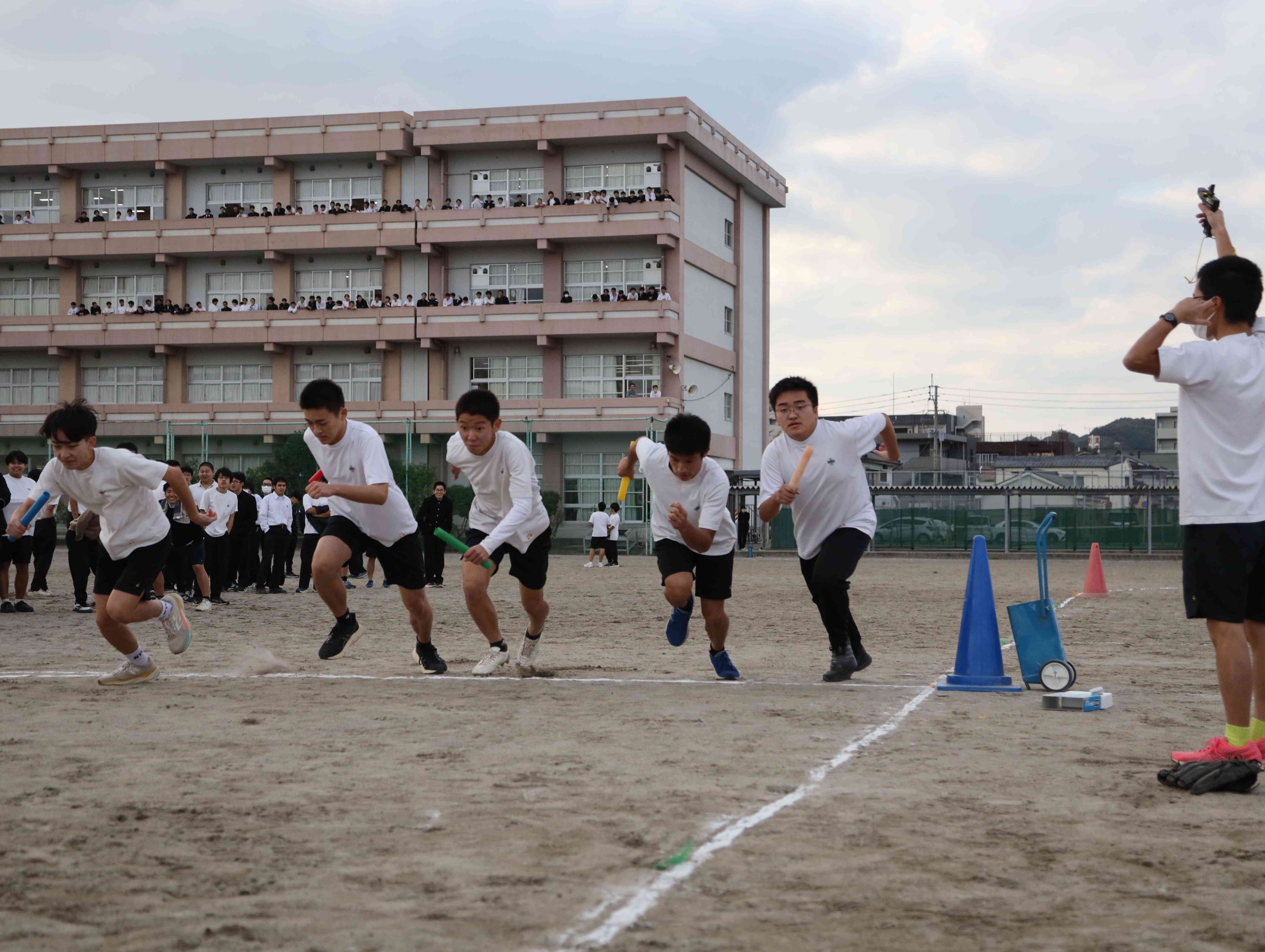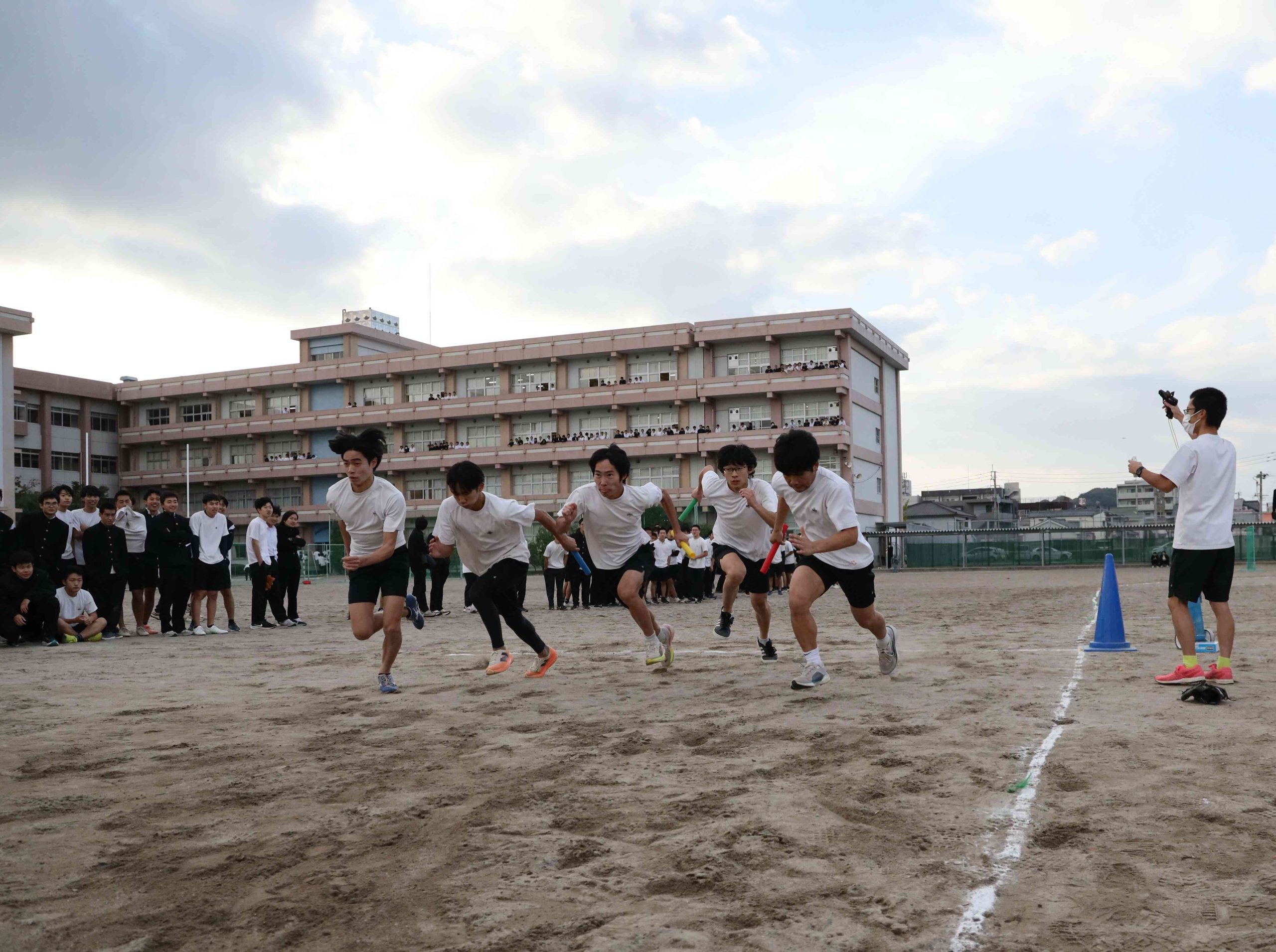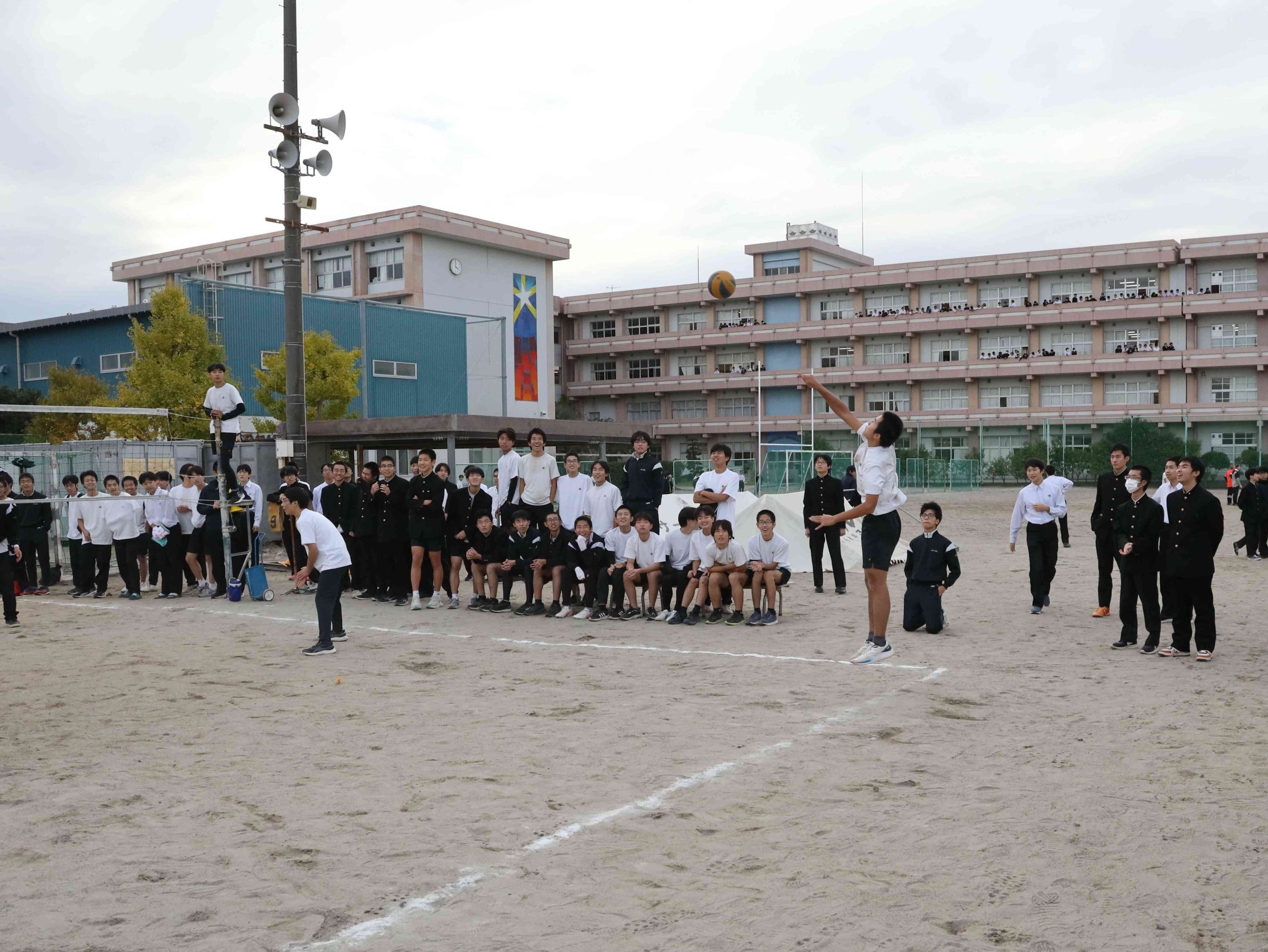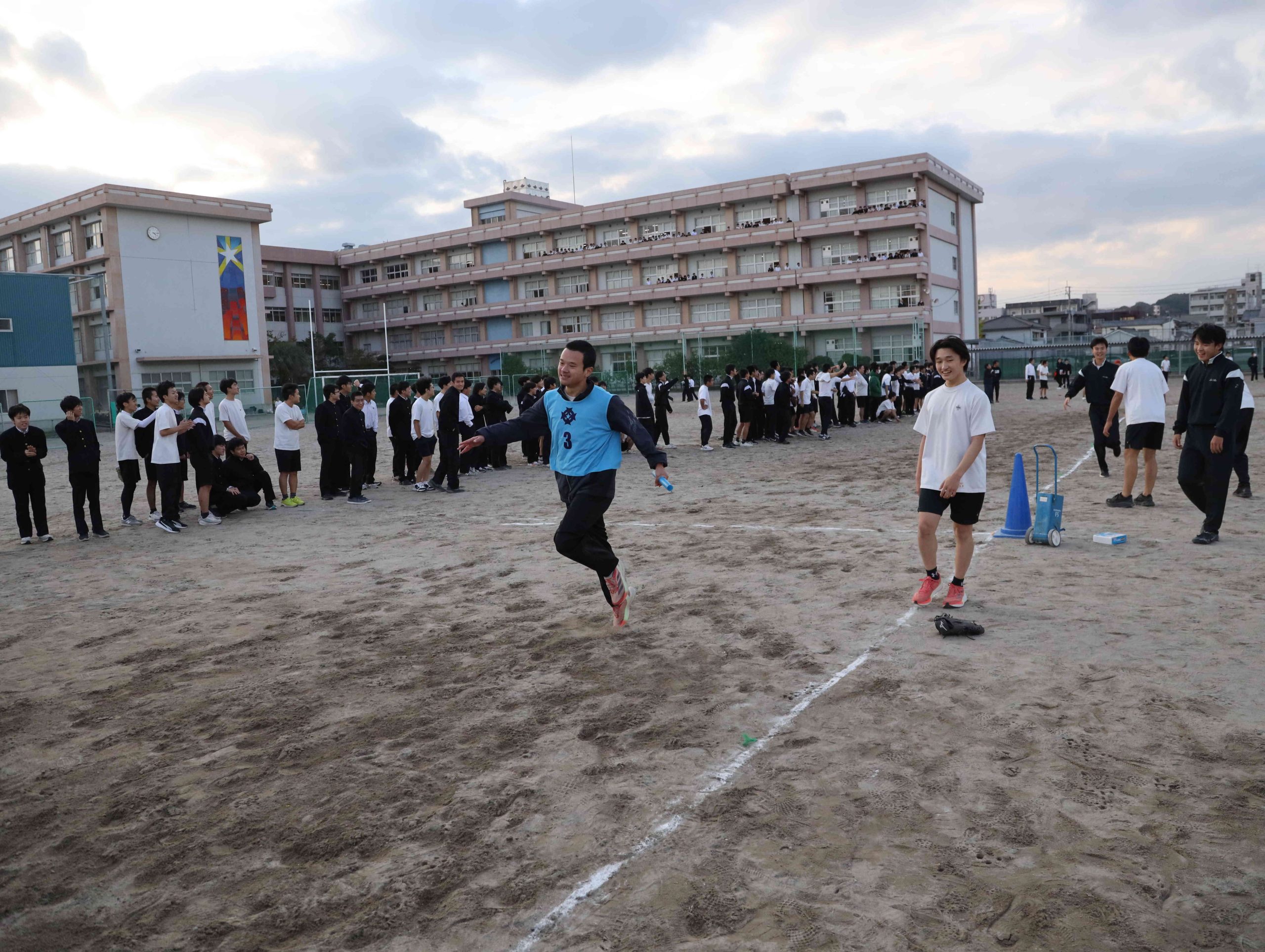 午後、高校クラスマッチが行われました。高3が卒業して、2学年での実施です。教員戦で優勝チームと教員チームが戦いました。さすが高校生、長打が次々に出ました。