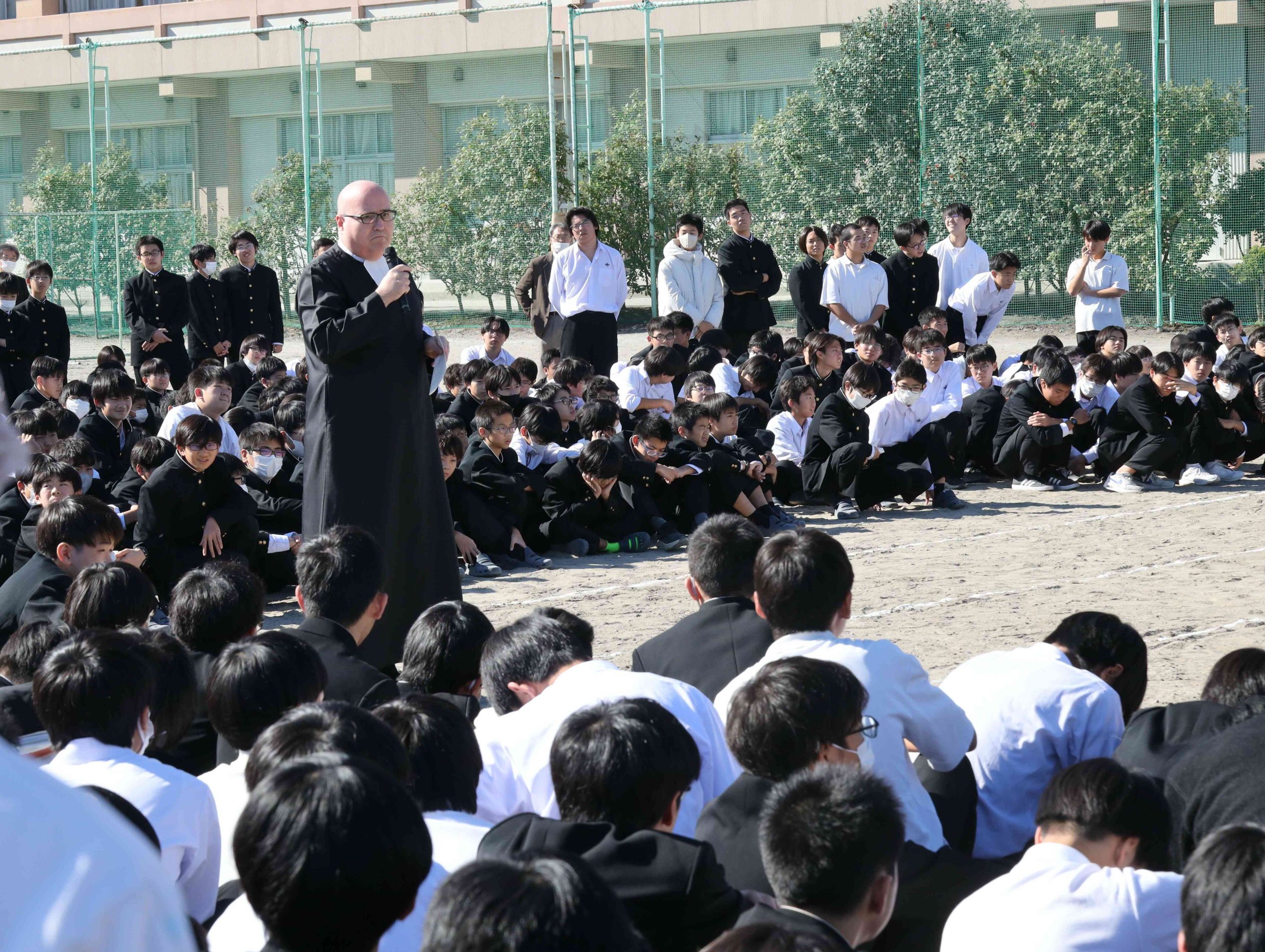 その後校長から講評がありました。校長は仙台市のラ・サールホームにいたときに東日本大震災に遭遇し、その経験を踏まえて、日頃からの意識と備えの大切さを語りかけました。