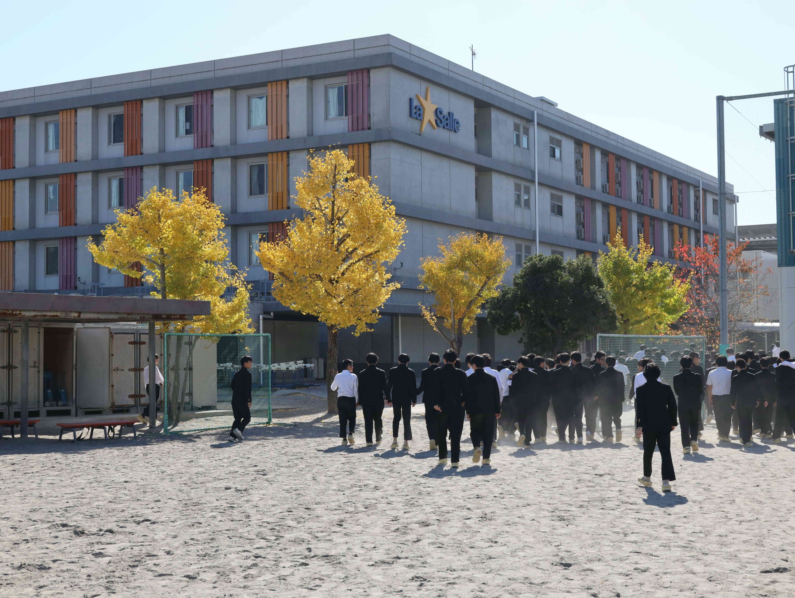 終了後、生徒は教室に帰ります。色づいた銀杏が綺麗でした。