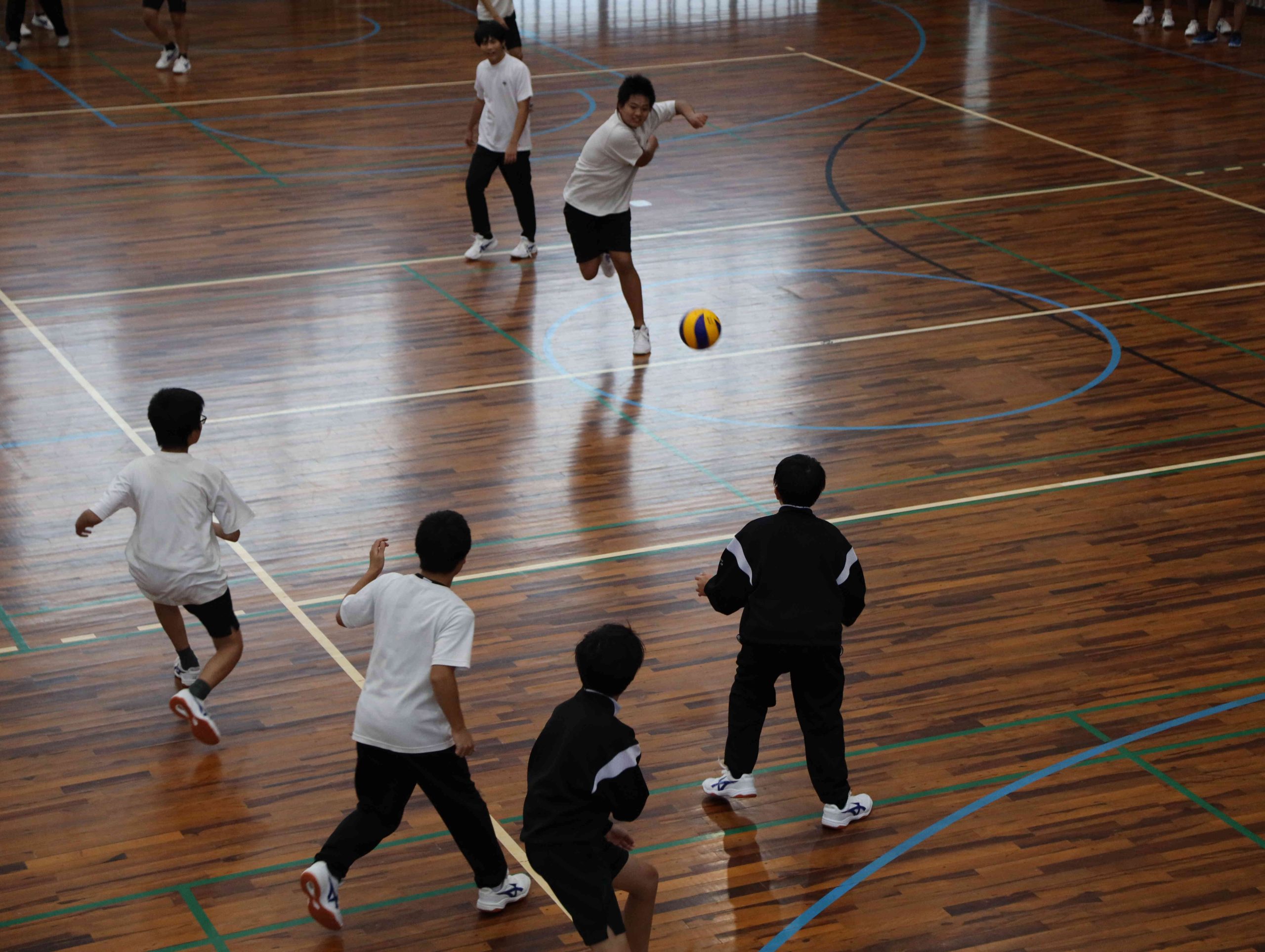 2日目はあいにく雨となり、予め決められていた雨天日程で競技を実施しました。こちら体育館ではドッジボールが行われました。