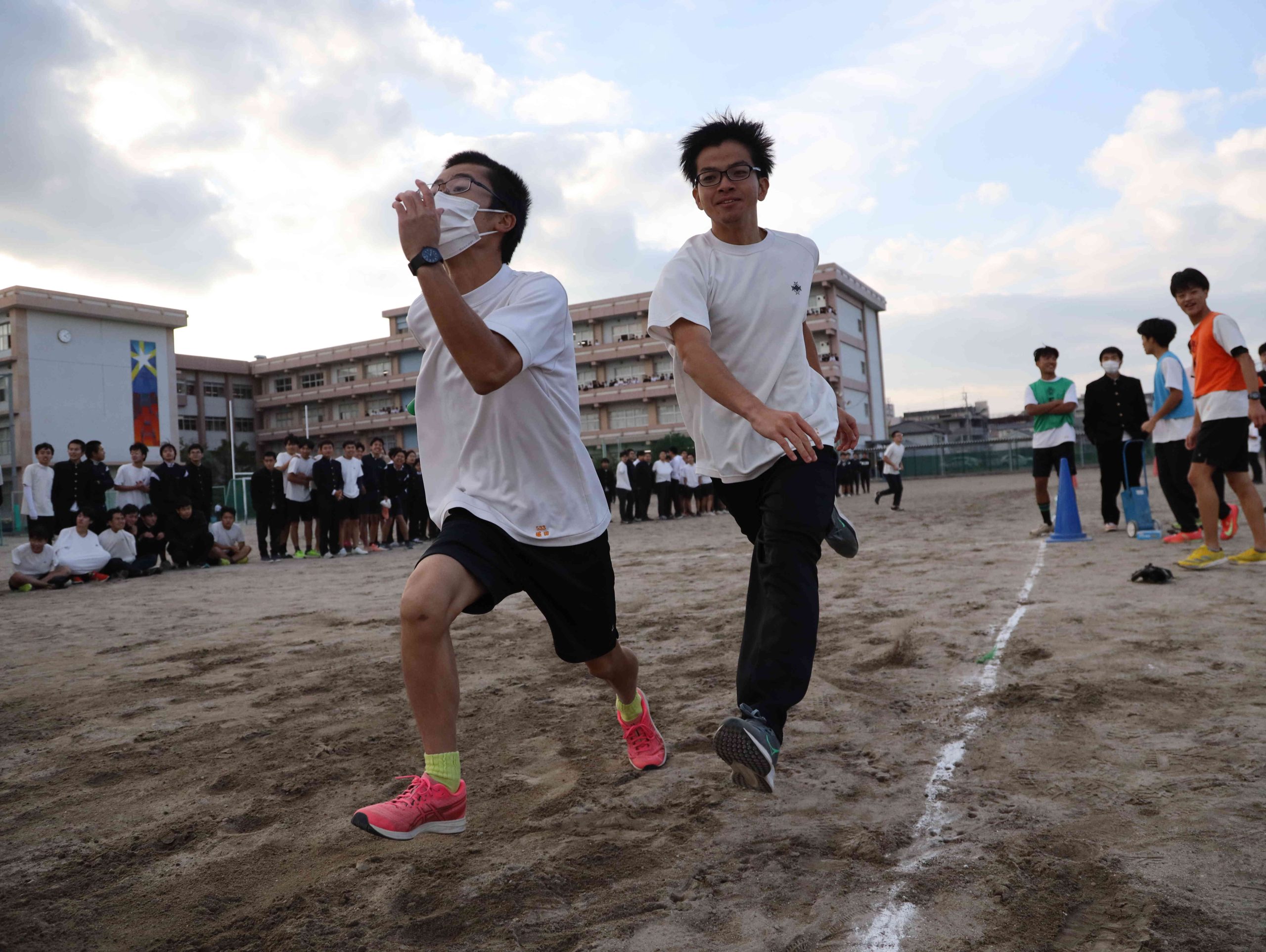 日程が短くなっても教員戦を必ずやるのが本校の流儀です。そのPK戦にたくさんのギャラリーが集まりました。Y先生が蹴ったボールの行方を、全員が目で追います。