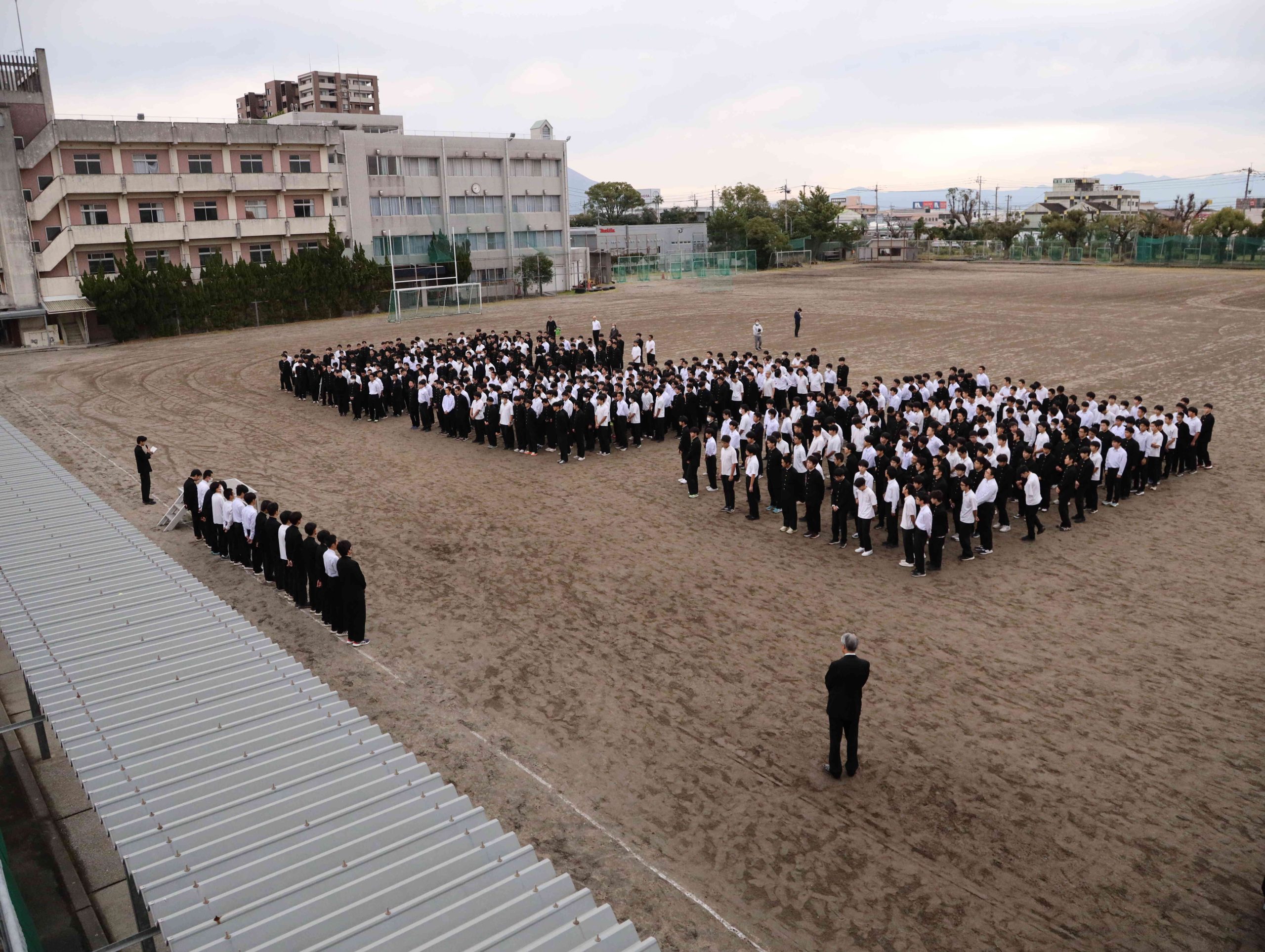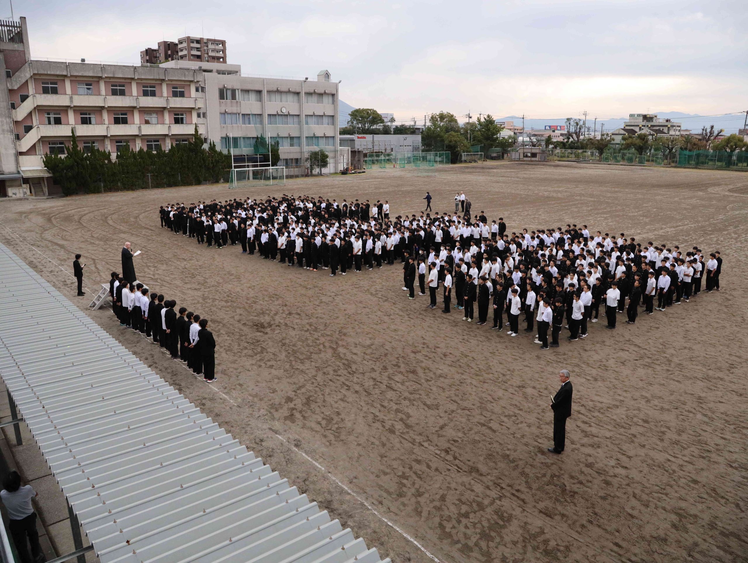 こちらは高校校舎前に集まった高校2年生が、学年主任の話を聞いているところです。こうして自分たちの置かれた状況を確認し、目線と足並みを揃えて、新しい学年がスタートします。