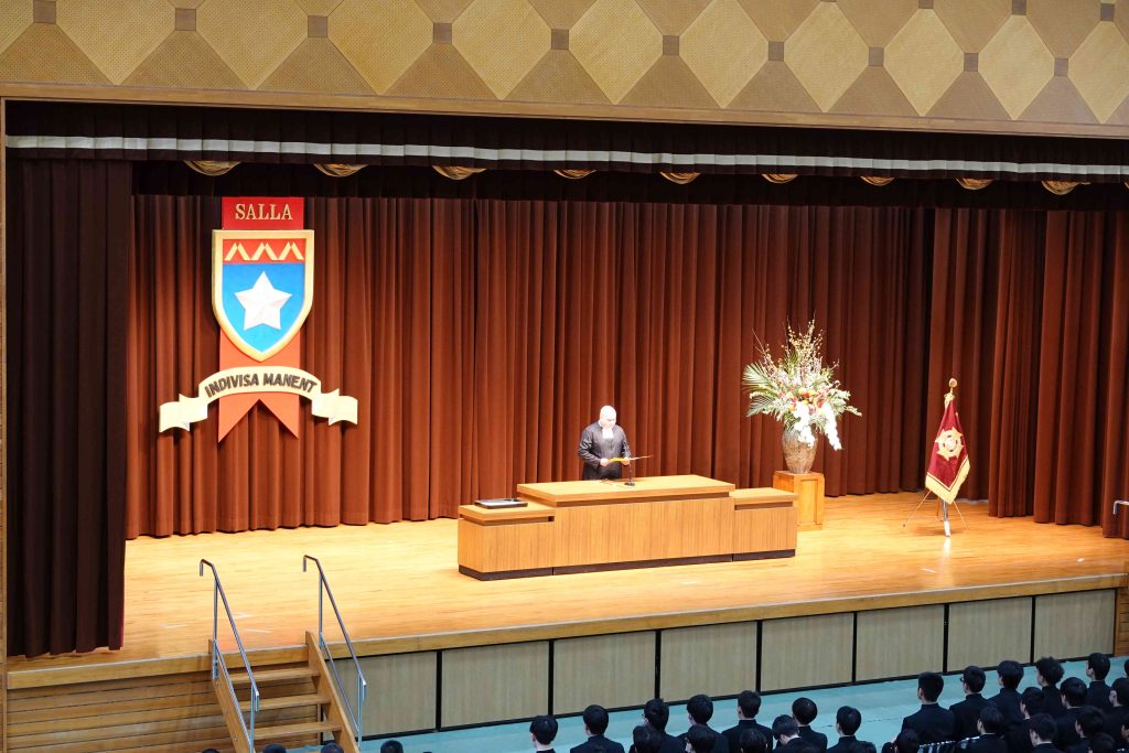 4月の入学式からラ・サールでの生活がはじまります。保護者、教職員が見守る中、厳粛な雰囲気で式が行われます。