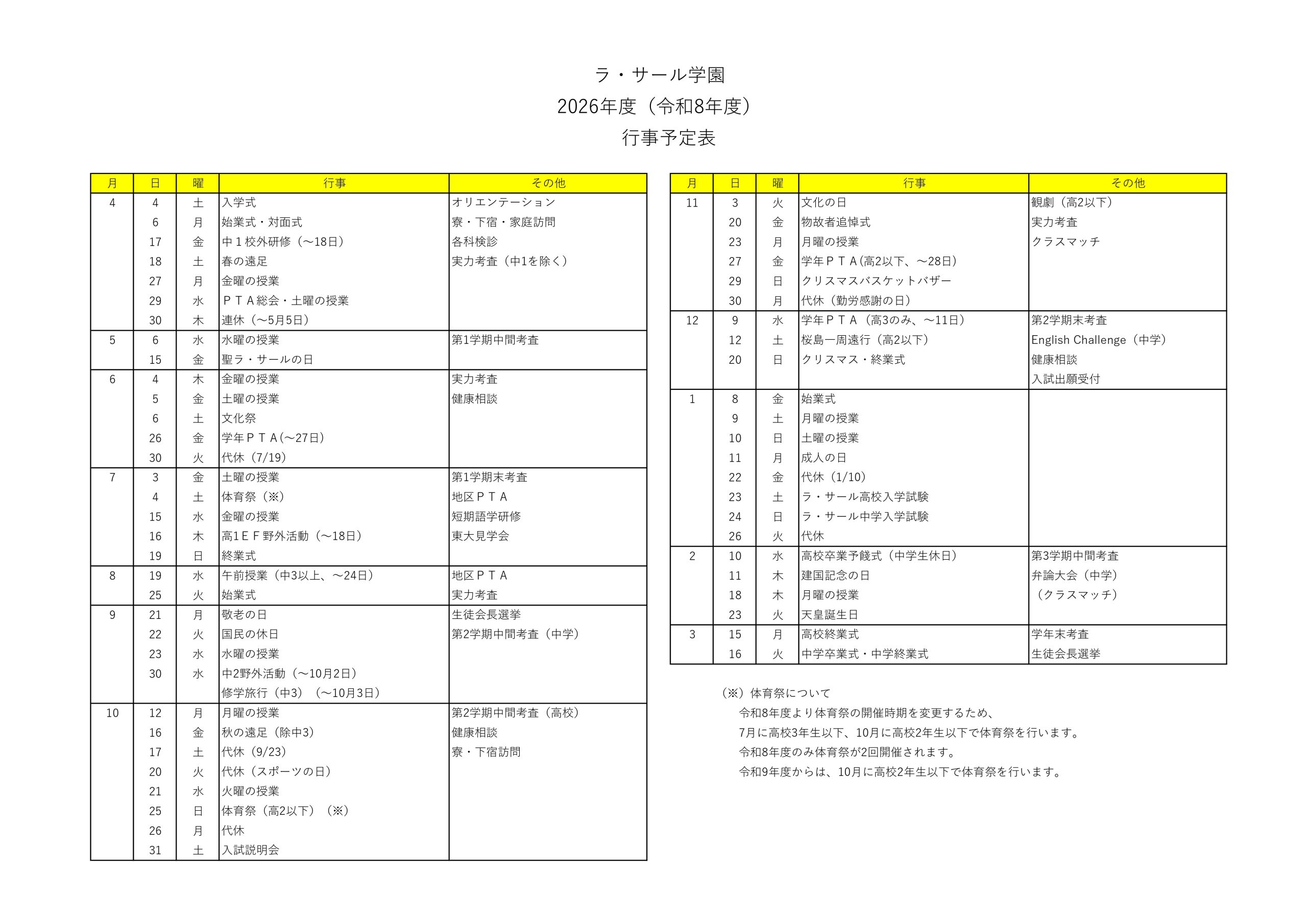 年間行事予定