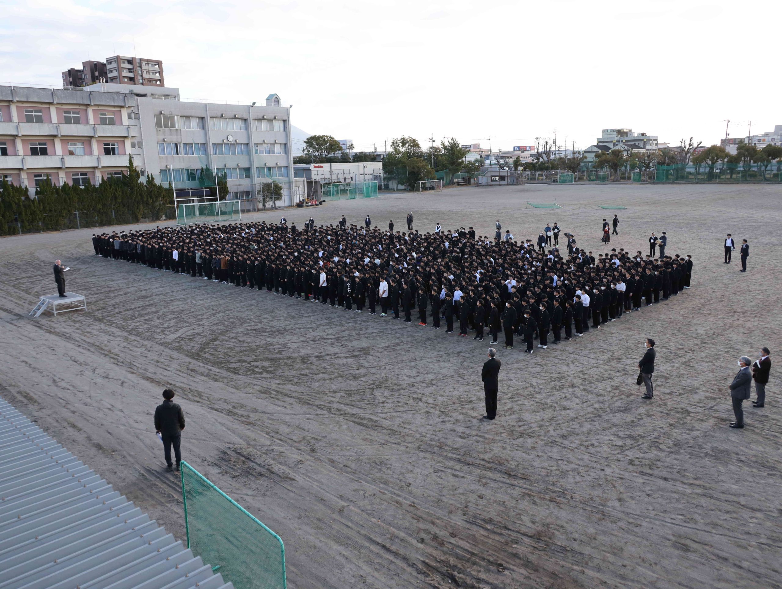 始業式が行われ、中学・高校の全生徒がグラウンドに揃いました。