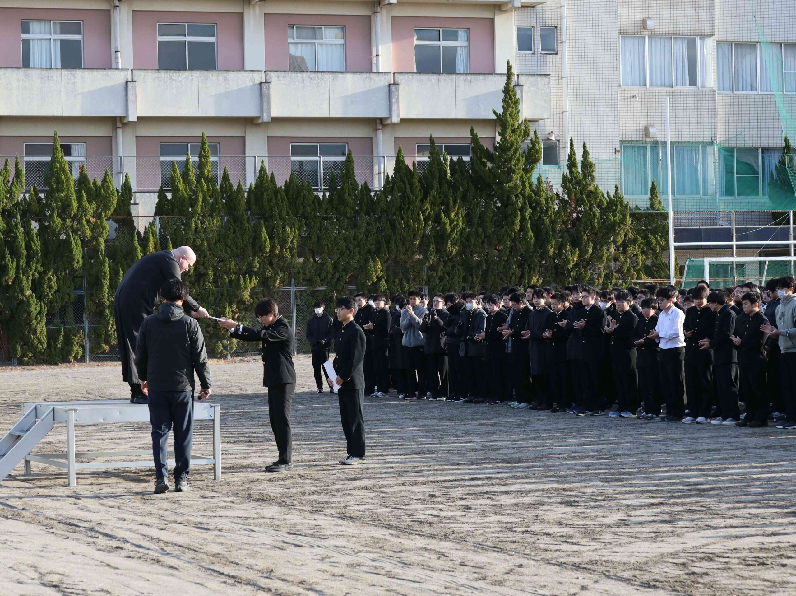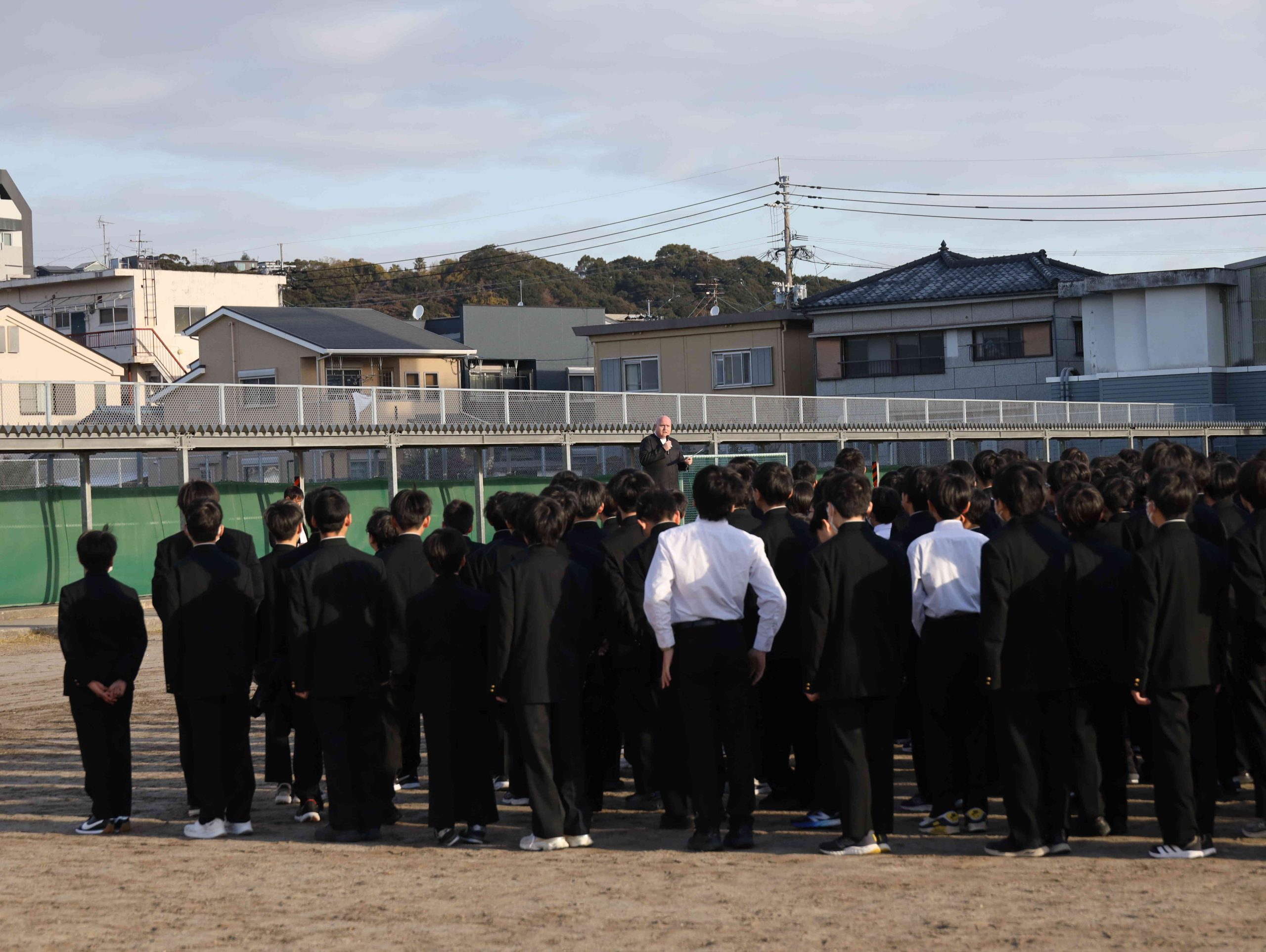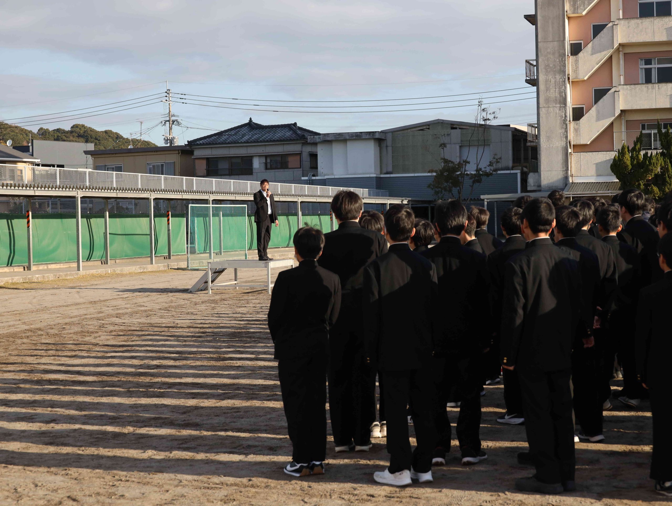 生活指導部長の話です。3 学期の生活についてのアドバイスが伝えられました。
