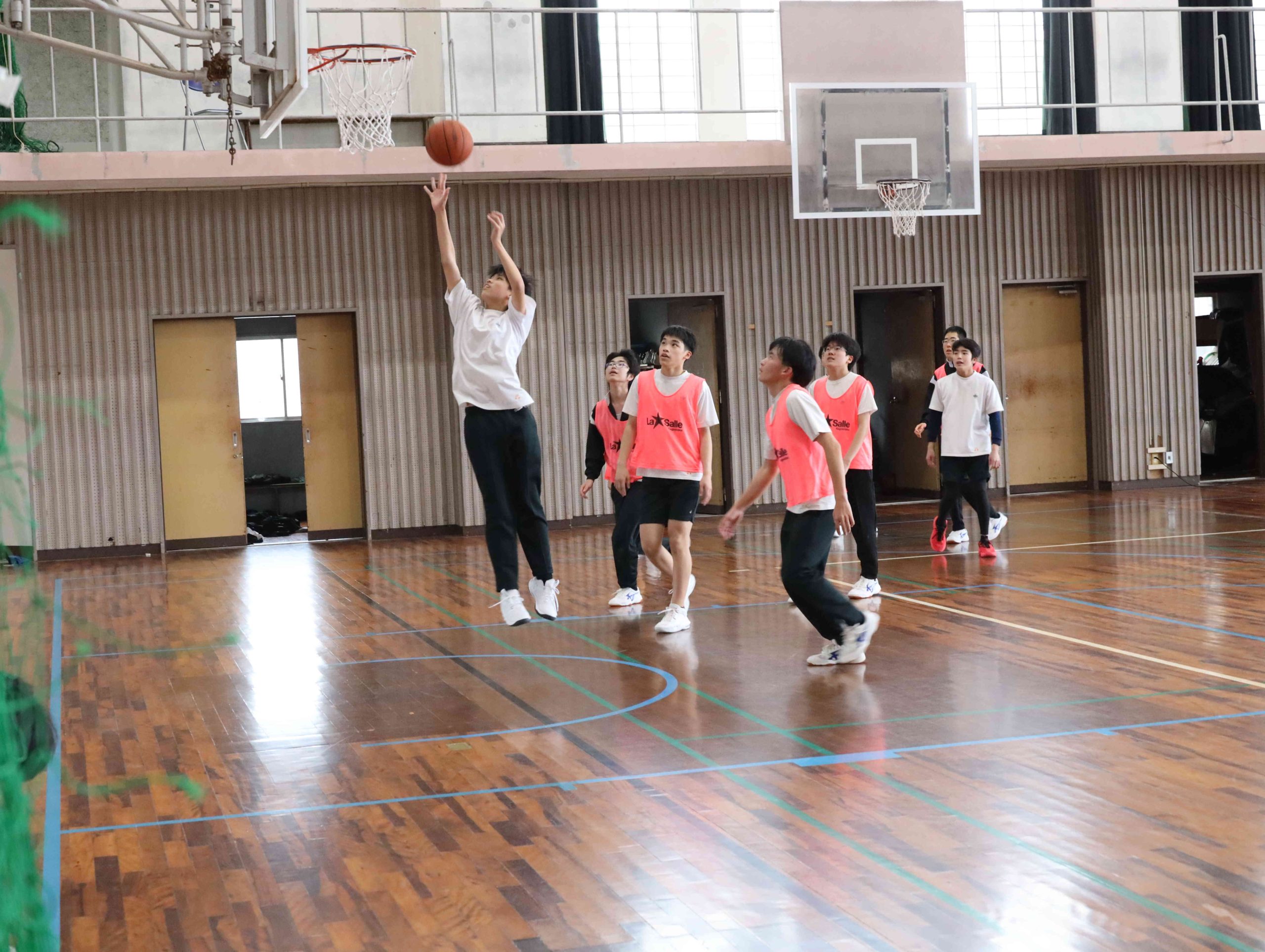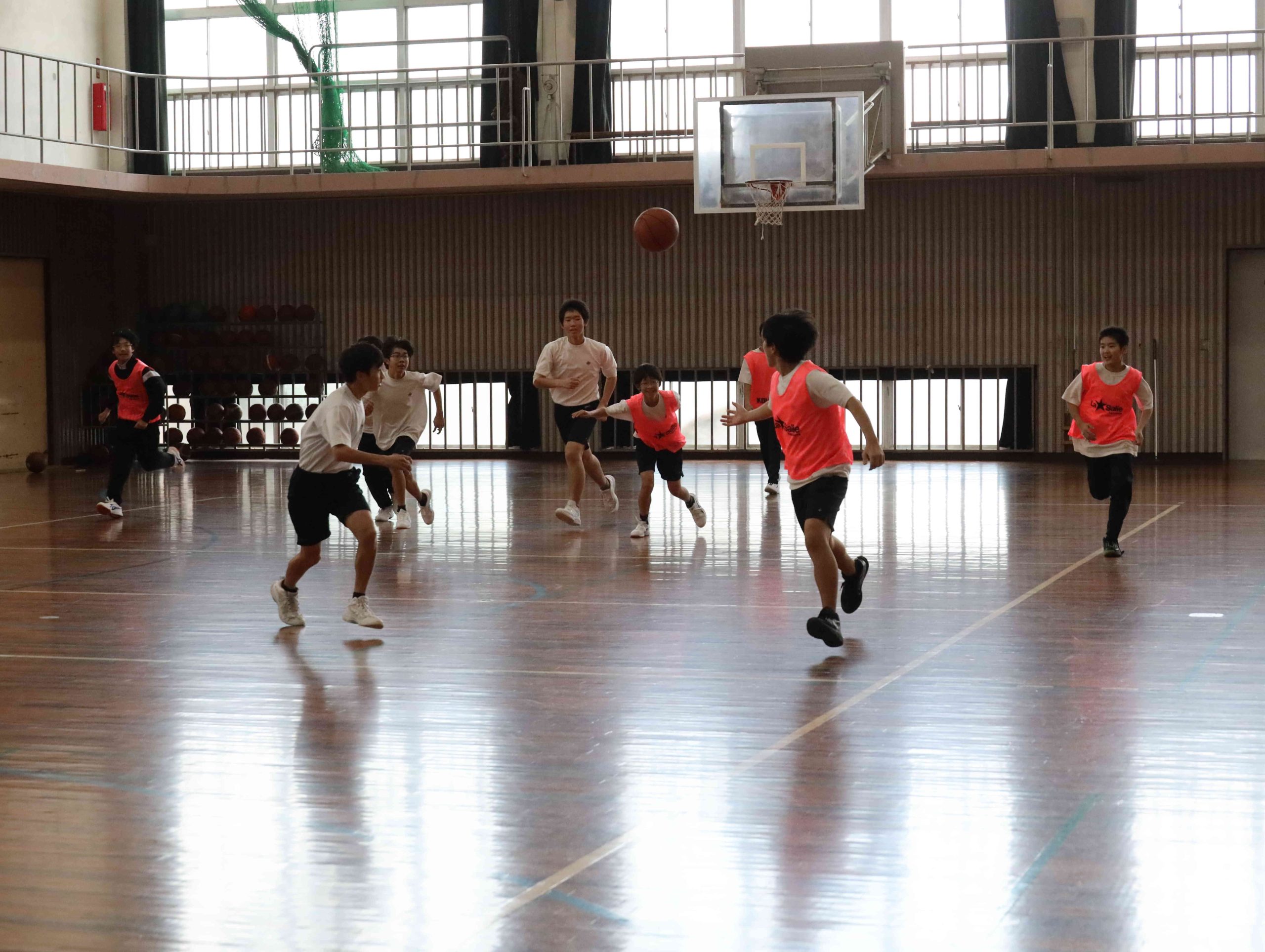バスケットの様子です。ボールがバウンドする音と靴がきしむ音、そしてかけ合う声の響きが印象的でした。