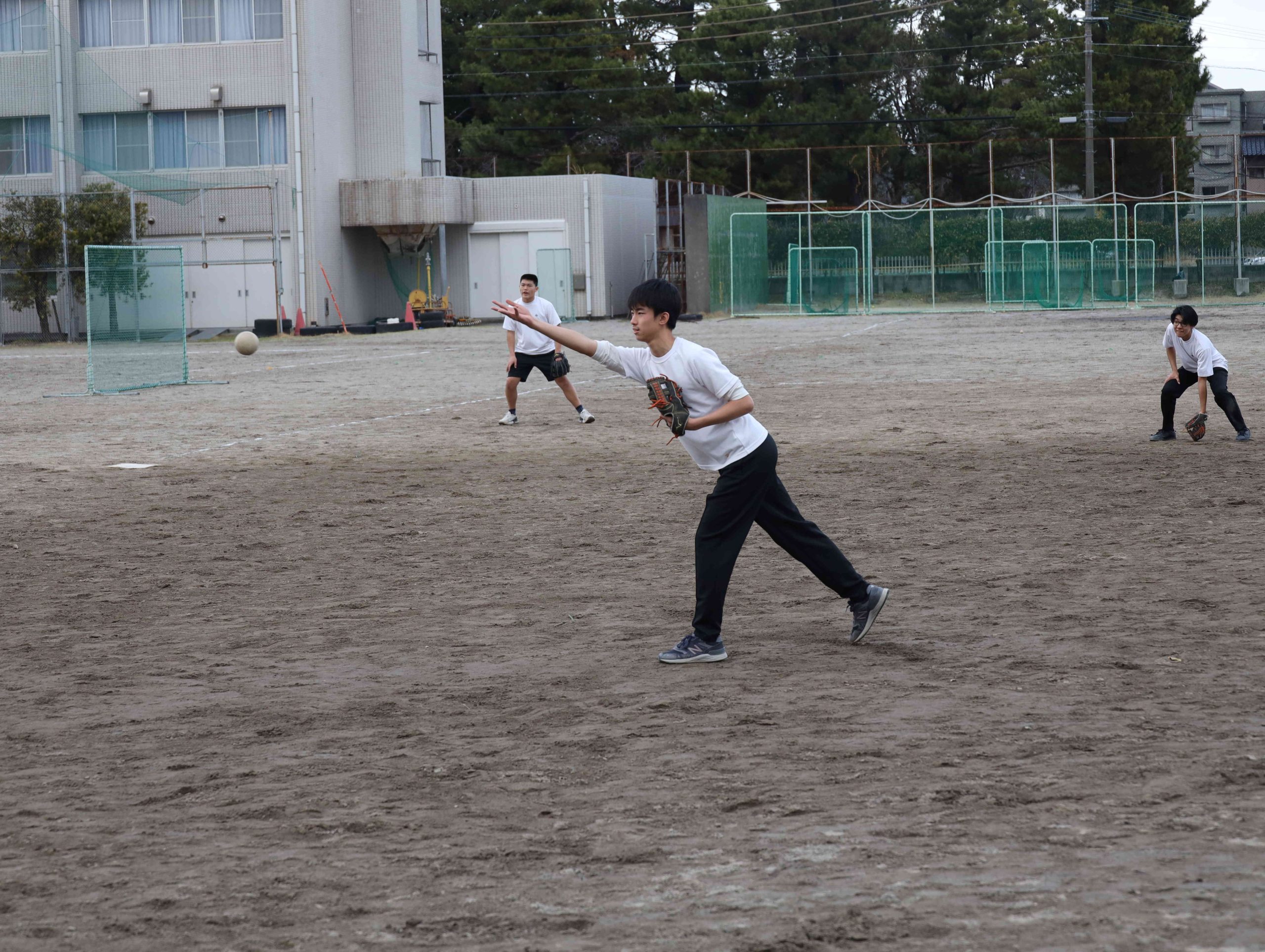 ソフトボールの様子です。球は意外に飛びませんが、妙な回転がかかっていたりして守りも意外に大変です。