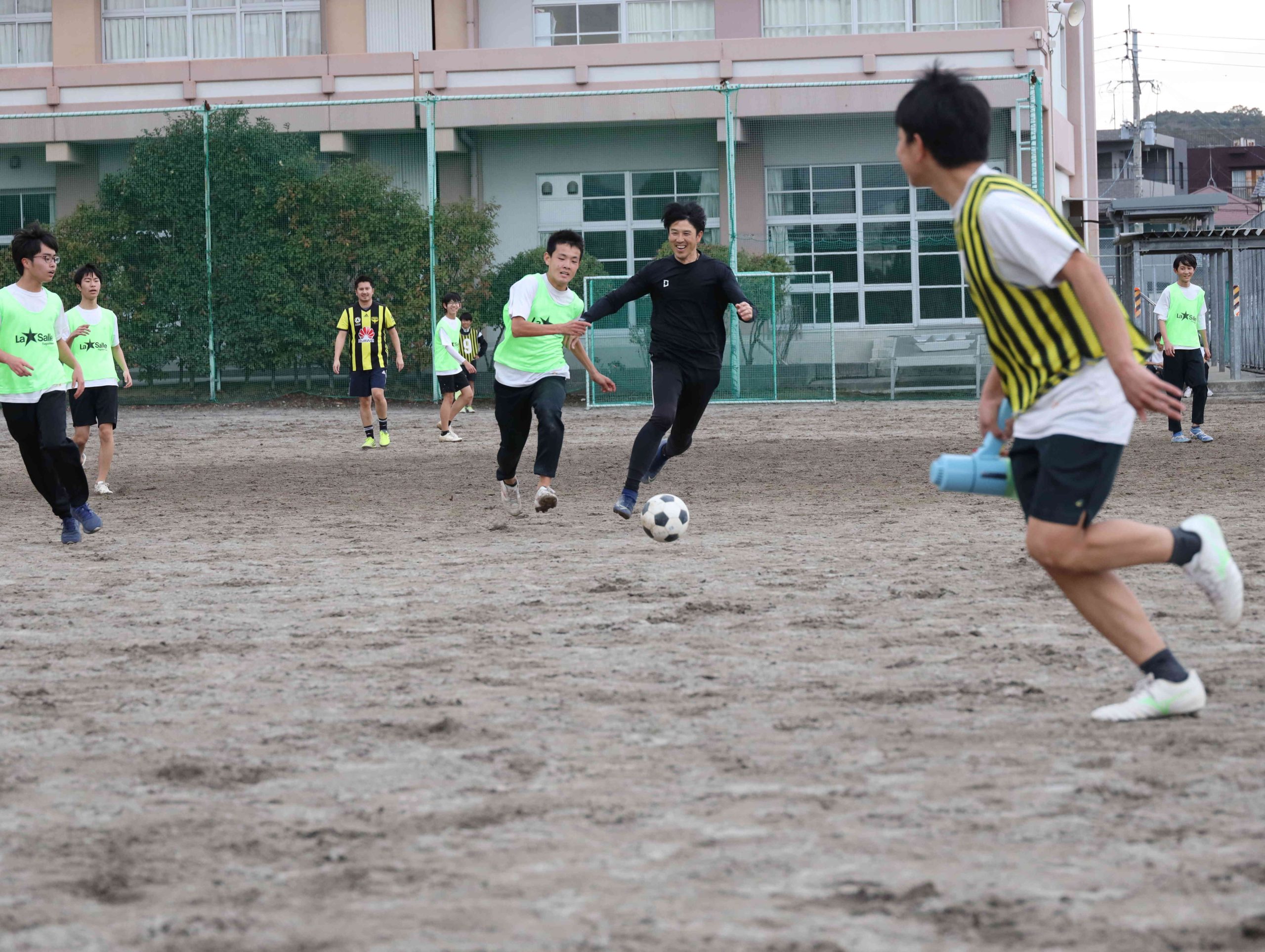 最後は恒例の教員戦。サッカーの得意な外国人教員がゴールに迫ります。