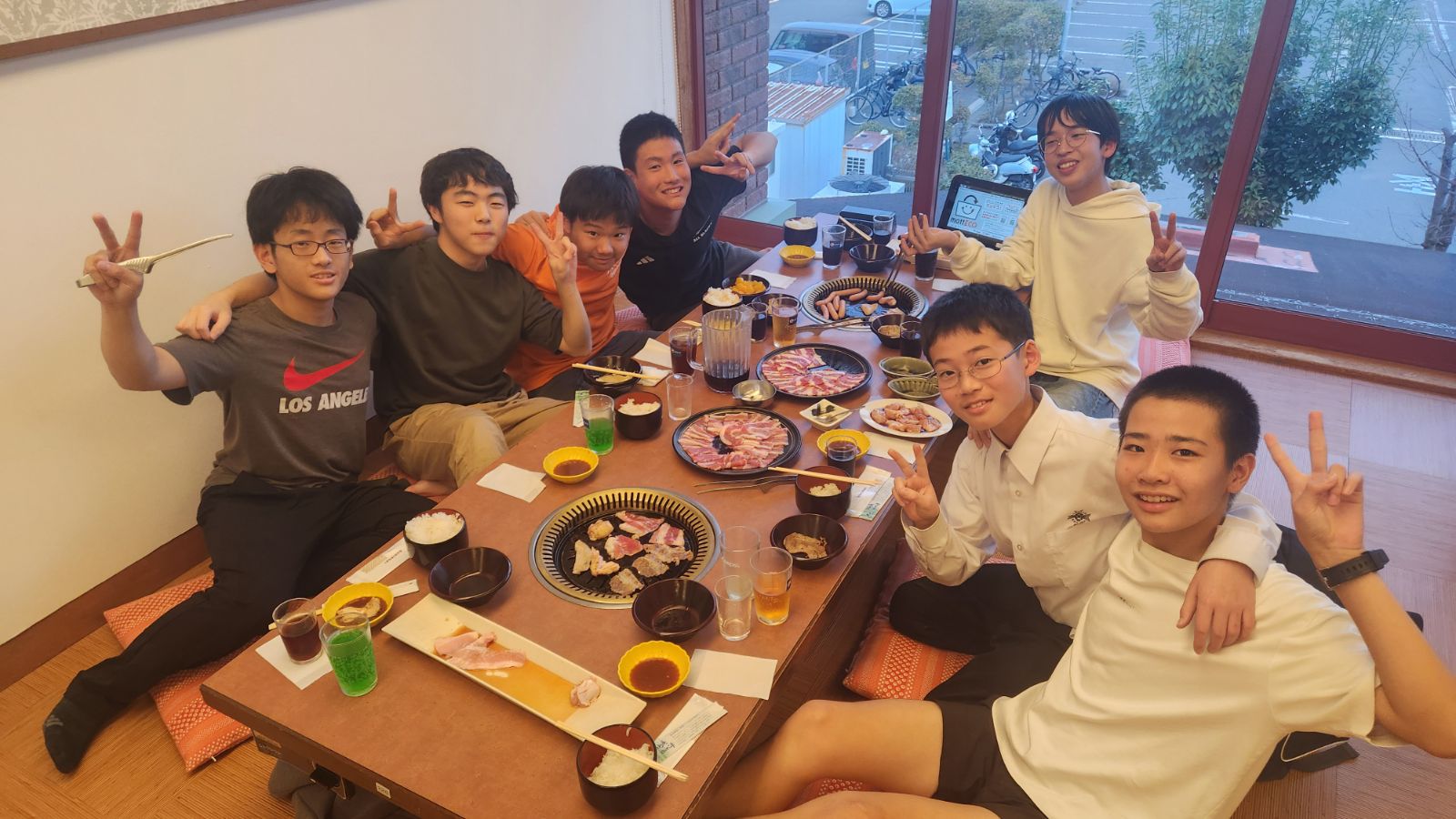 この時期、中学寮・高校寮ではフロアごとに日程をずらして中3や高2の送別会を外部の飲食店で行い、みんなで焼肉をいただきます。