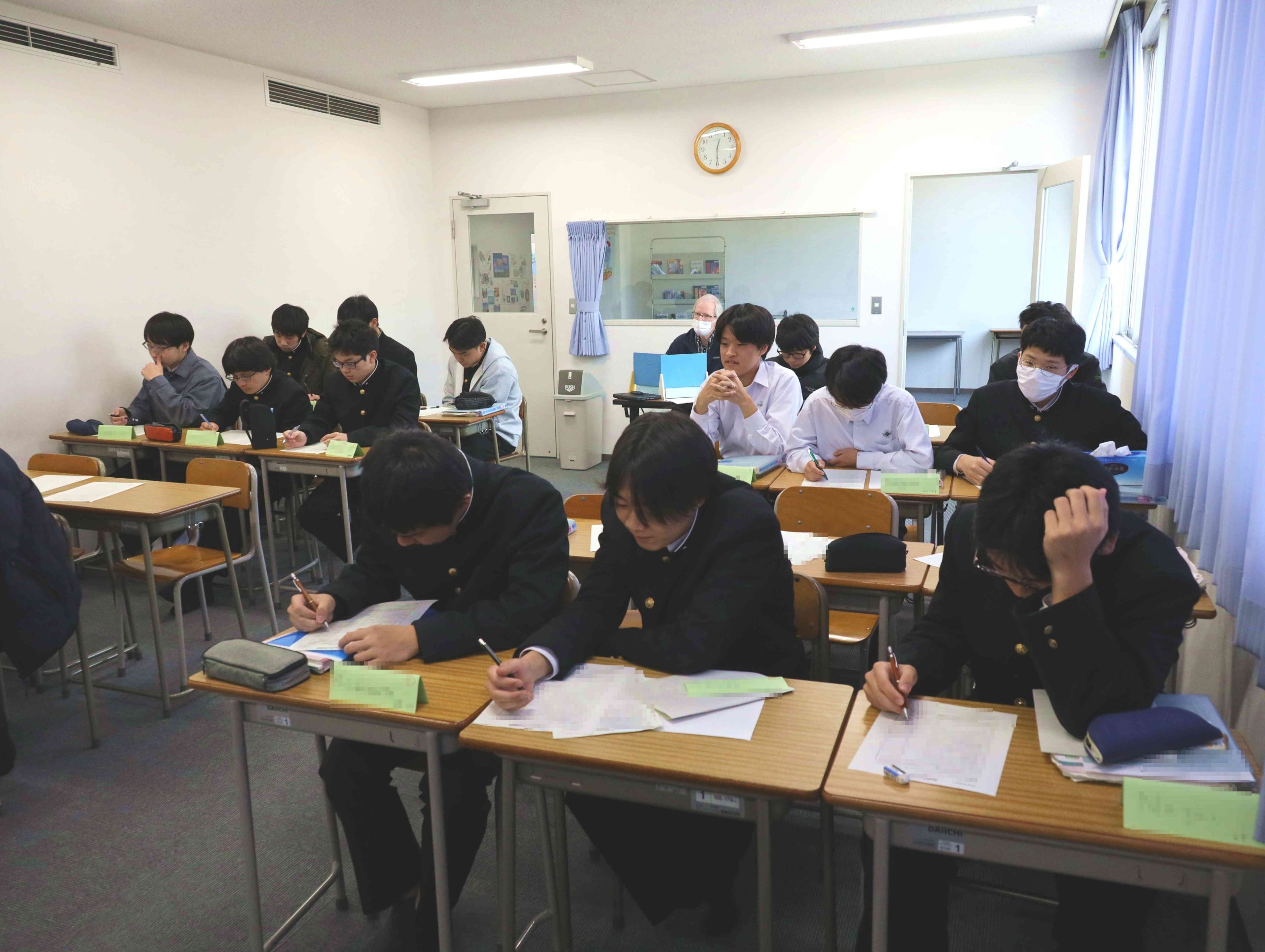 本日は三学期中間試験の最終日です。写真は「公共」の試験に挑む高校1年生の様子です。