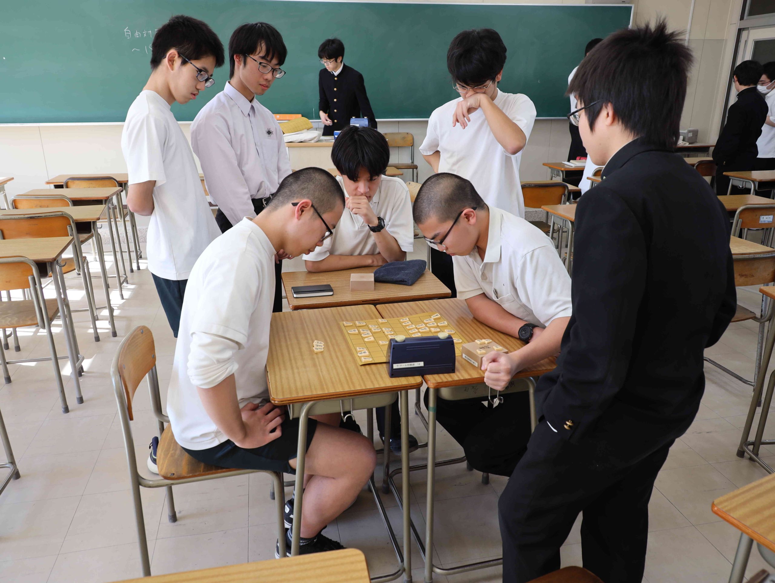 自習室では将棋とオセロをしています。ギャラリーも興味津々で見守ります。