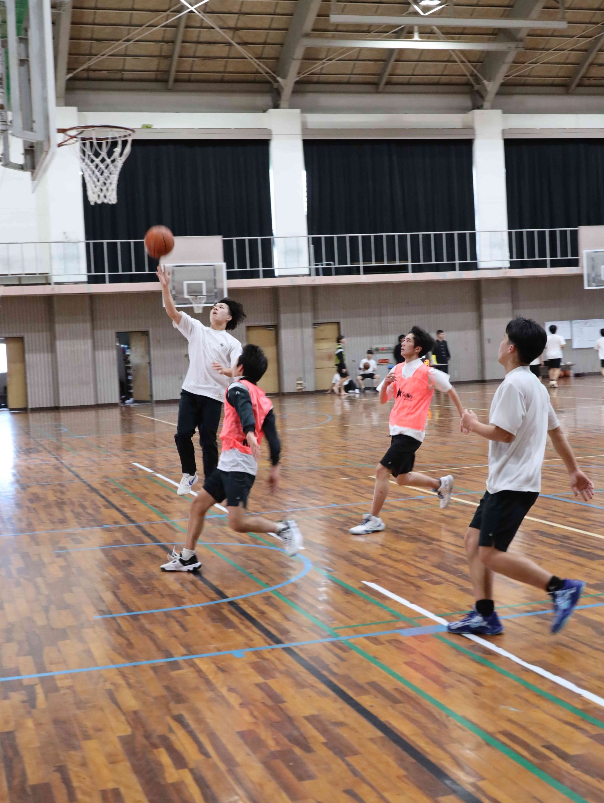 体育館でのバスケットボールの試合です。とてもスピード感のあるゲームでした。