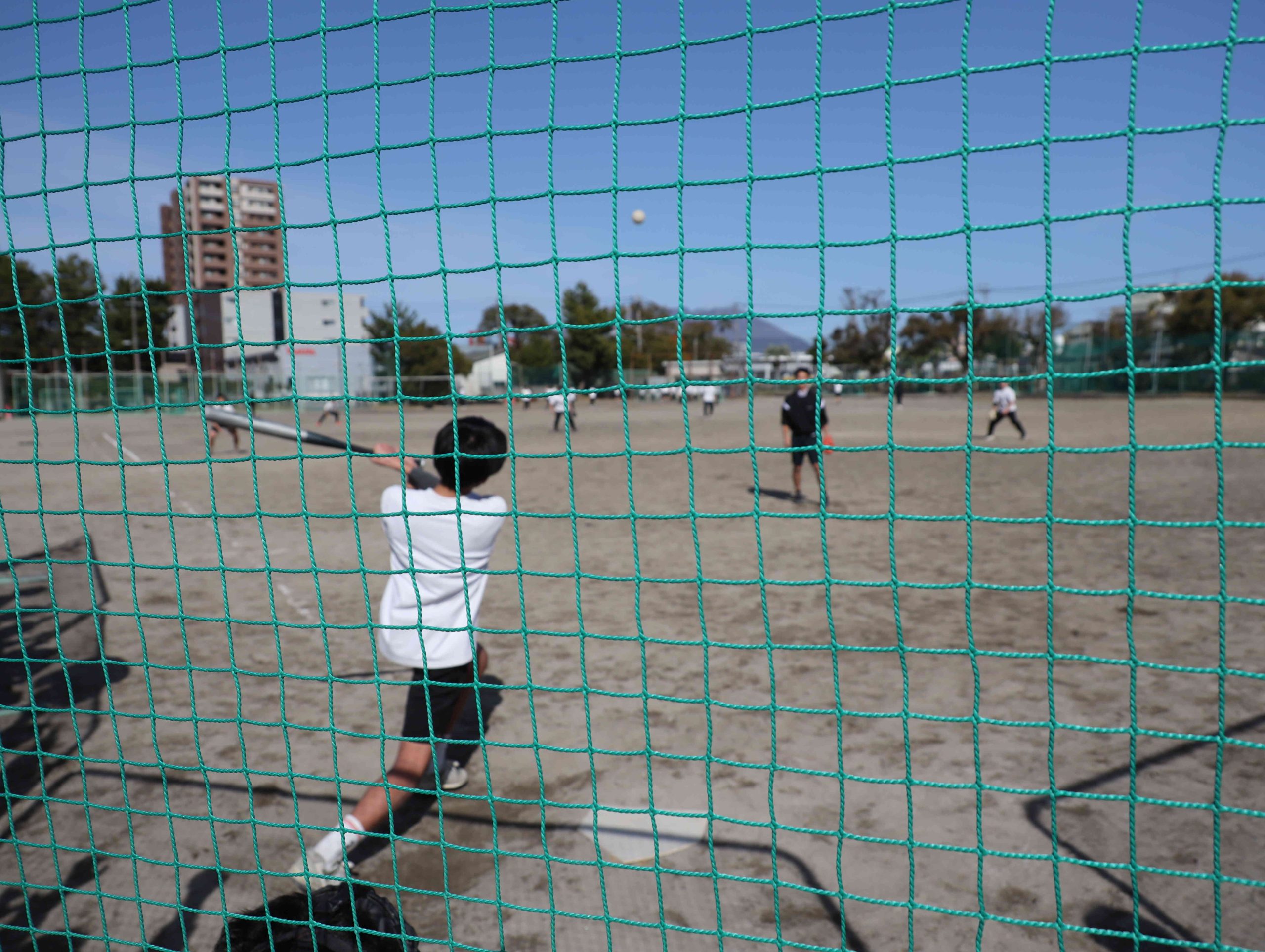 ソフトボールです。ネットの向こうに別世界が広がっています。
