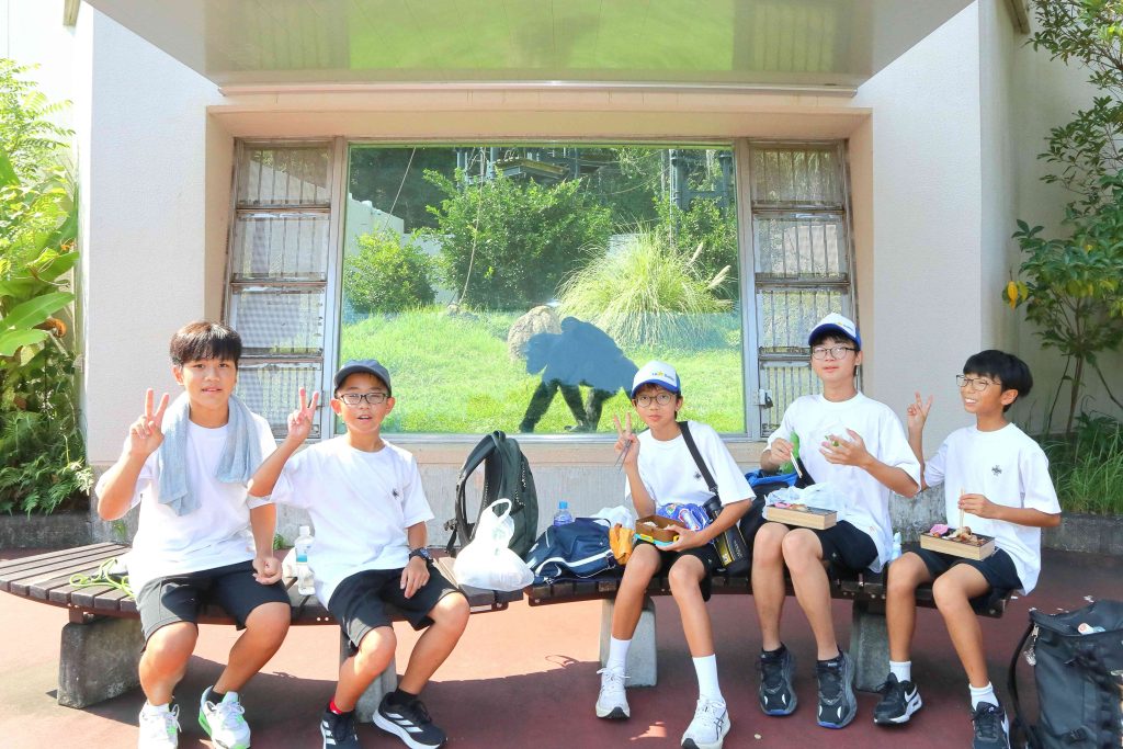 中1遠足 2025年10月17日 最終更新日時 : 2025年10月27日 kanri 平川動物公園まで約9キロを歩いて往復しました。 ゾウ舎にて。後ろの小窓にゾウさんのお尻がアップで見えています。 チンパンジー舎前にて。子どもがお母さんの背中に乗っています。 それぞれが推しのお菓子を持ち寄り、シェアしています。